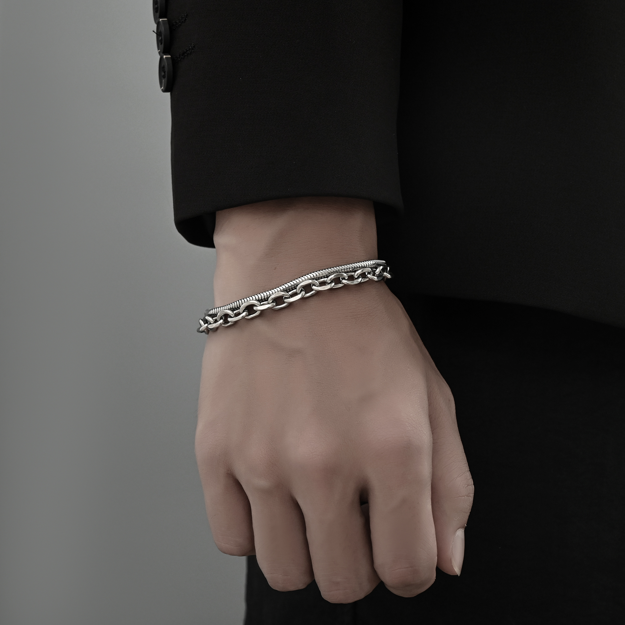 不掉色钛钢双层古巴手链