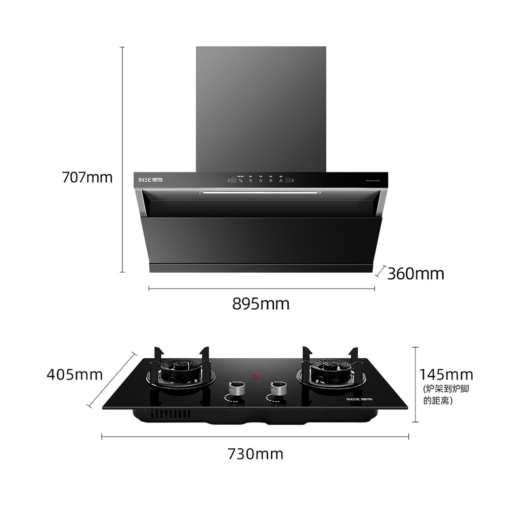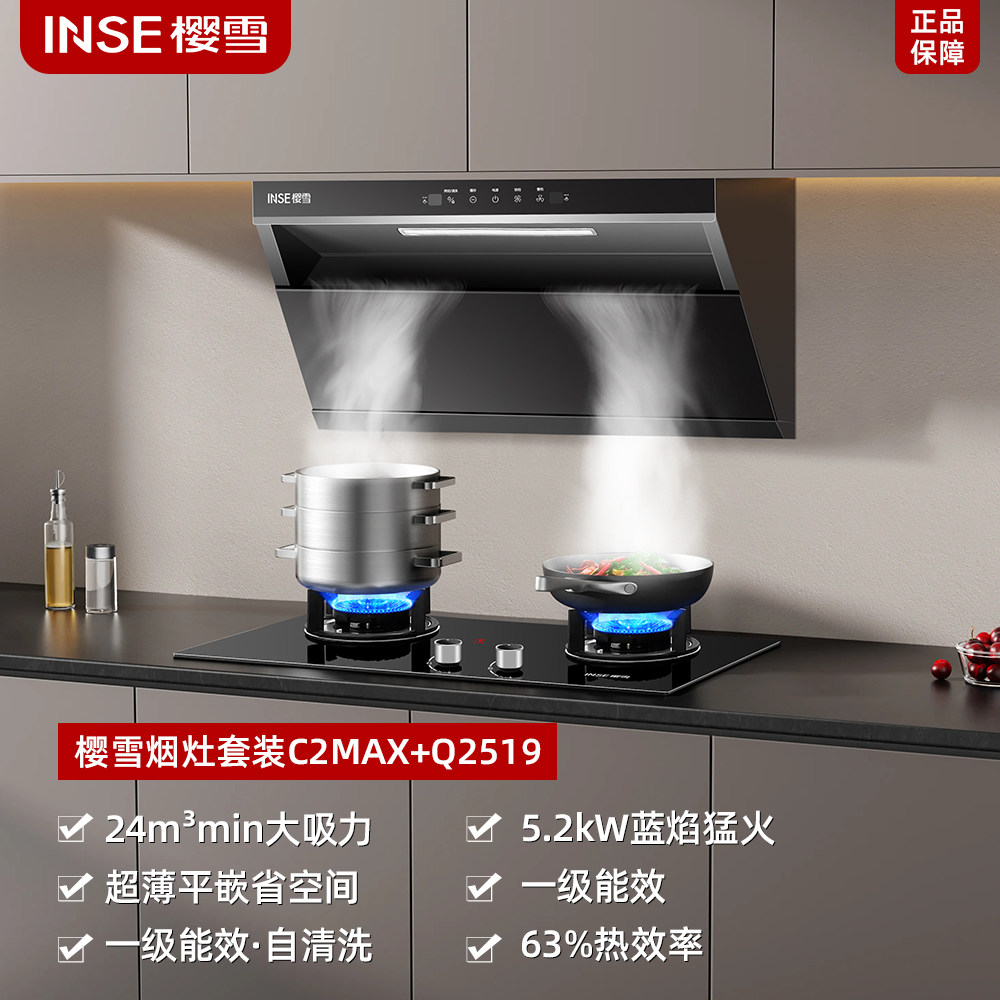 樱雪C2油烟机侧吸吸油烟机家用排烟机挥手感应嵌入式双灶烟灶套装