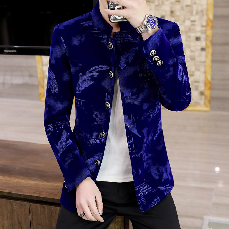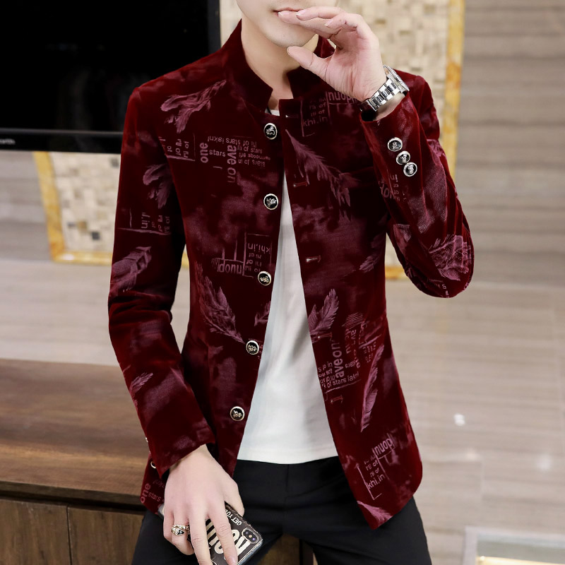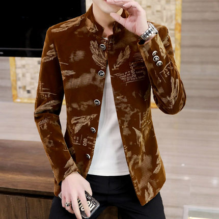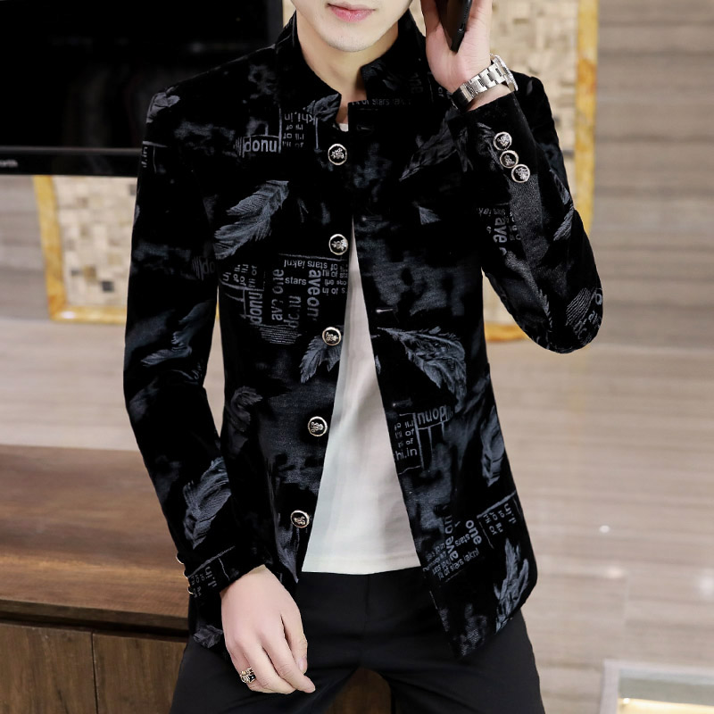 男装春季中华立领夹克外套潮流痞帅青年中山装西服男士韩版花西装
