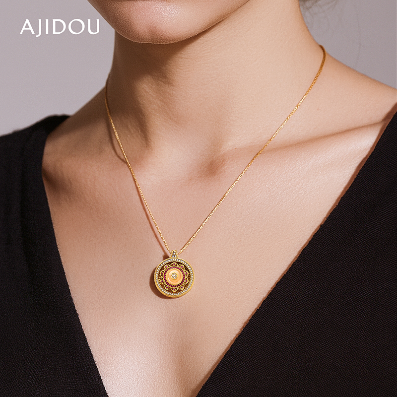 AJIDOU阿吉豆项链女金色罗盘吊坠