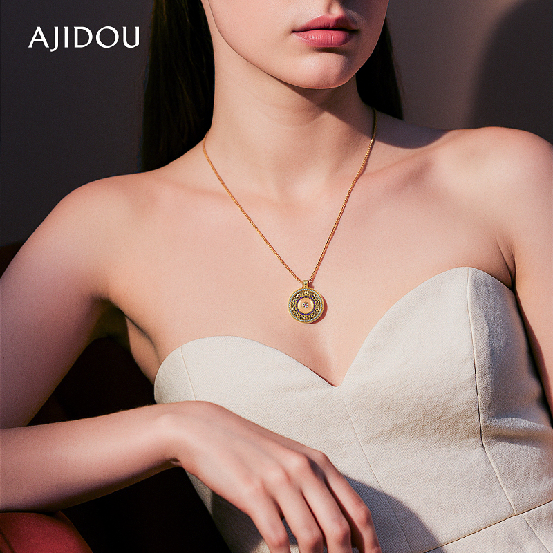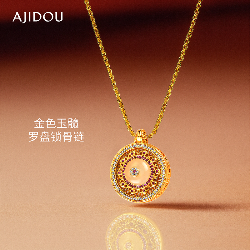 AJIDOU阿吉豆项链女金色玉髓罗盘锁骨链精致小众女士吊坠轻奢饰品
