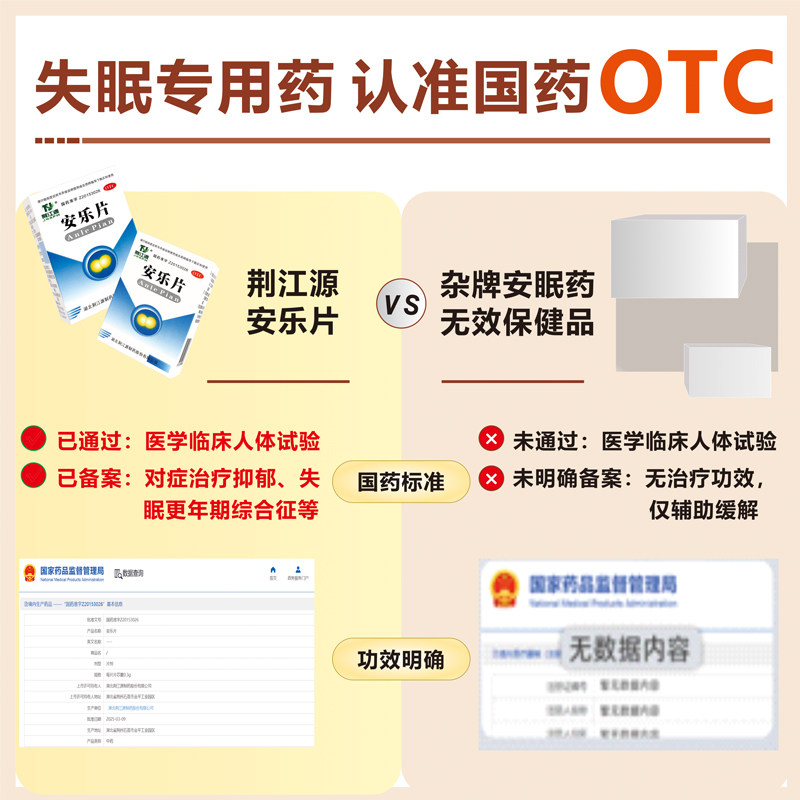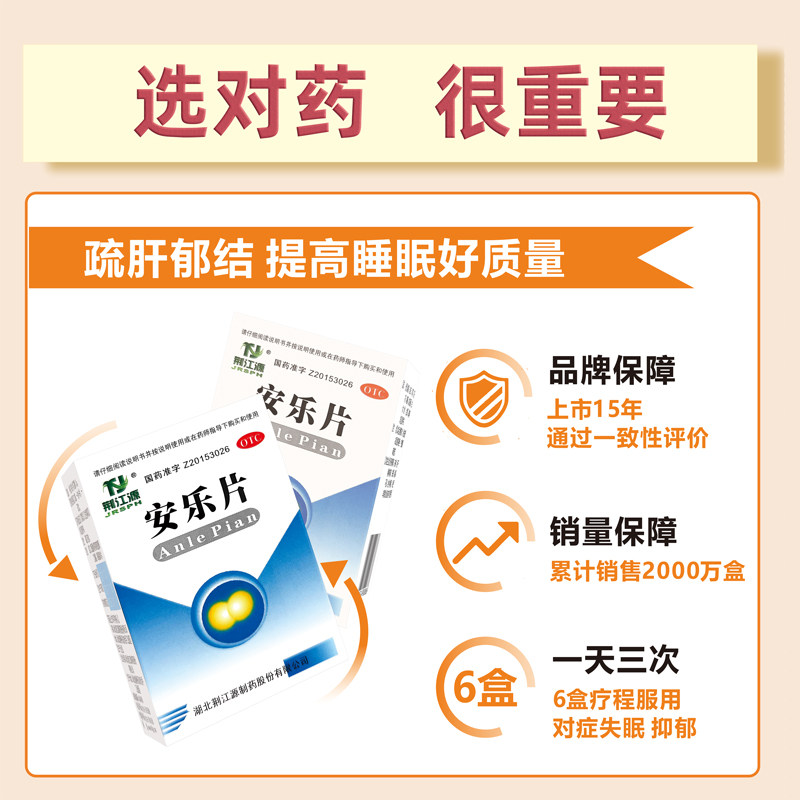 【自营】【荆江源】安乐片0.3g*60片*1瓶/盒医用安眠片失眠助眠安神助睡舒肝解郁焦虑