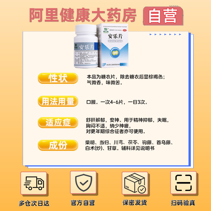 安乐片医用安眠片睡眠100片重度失眠安神助睡药疏肝解郁神经衰弱