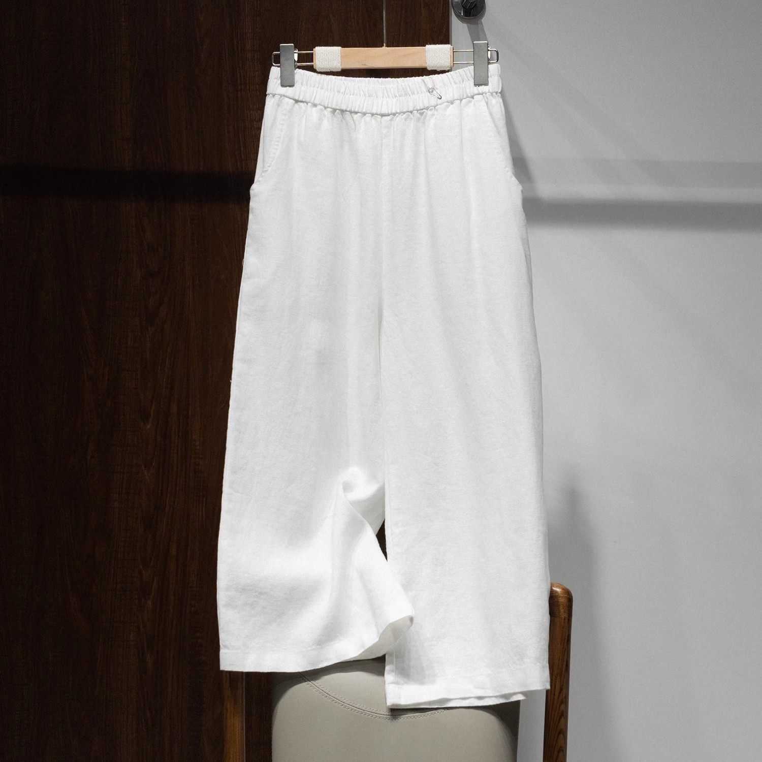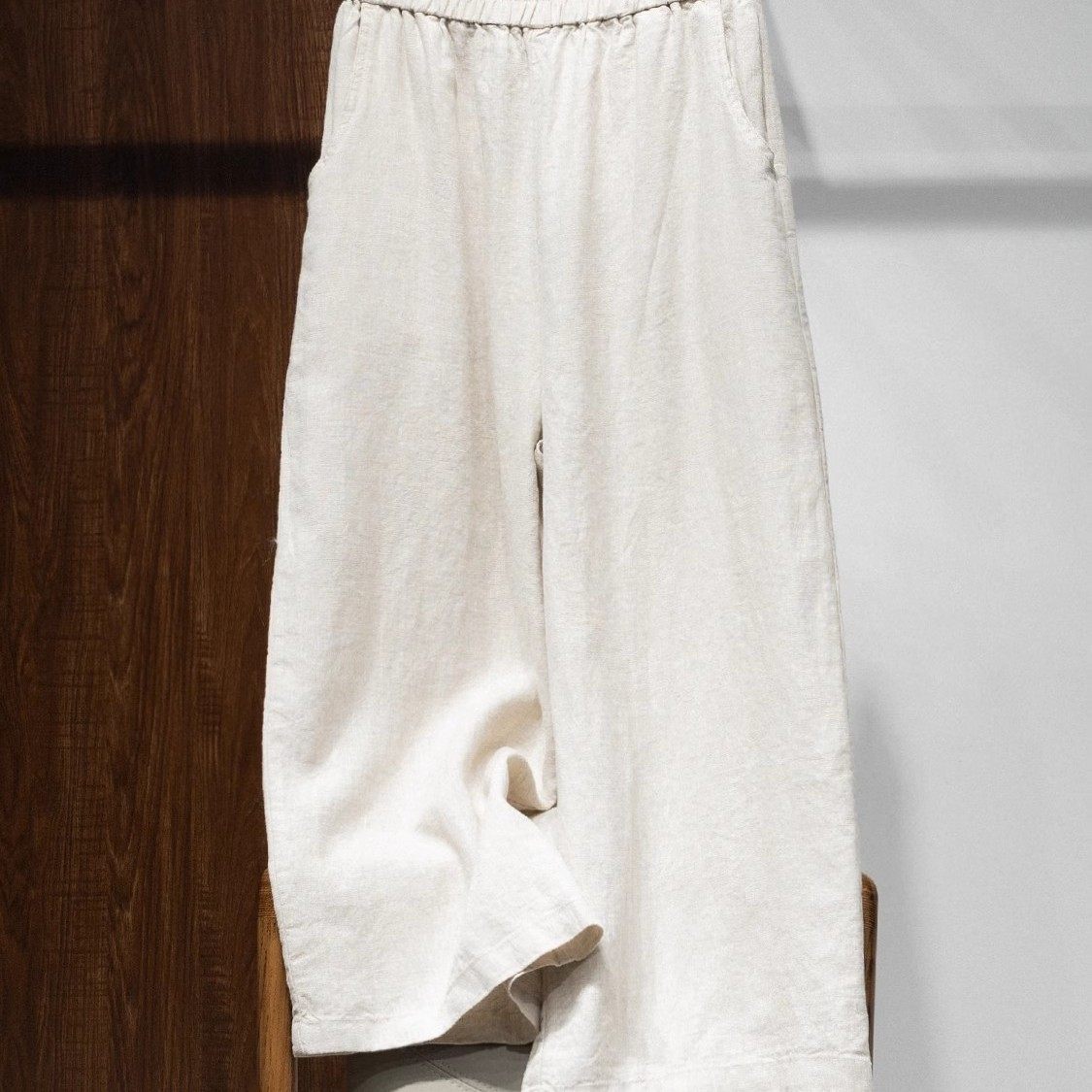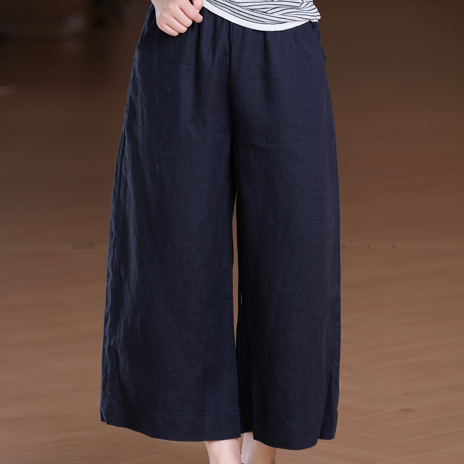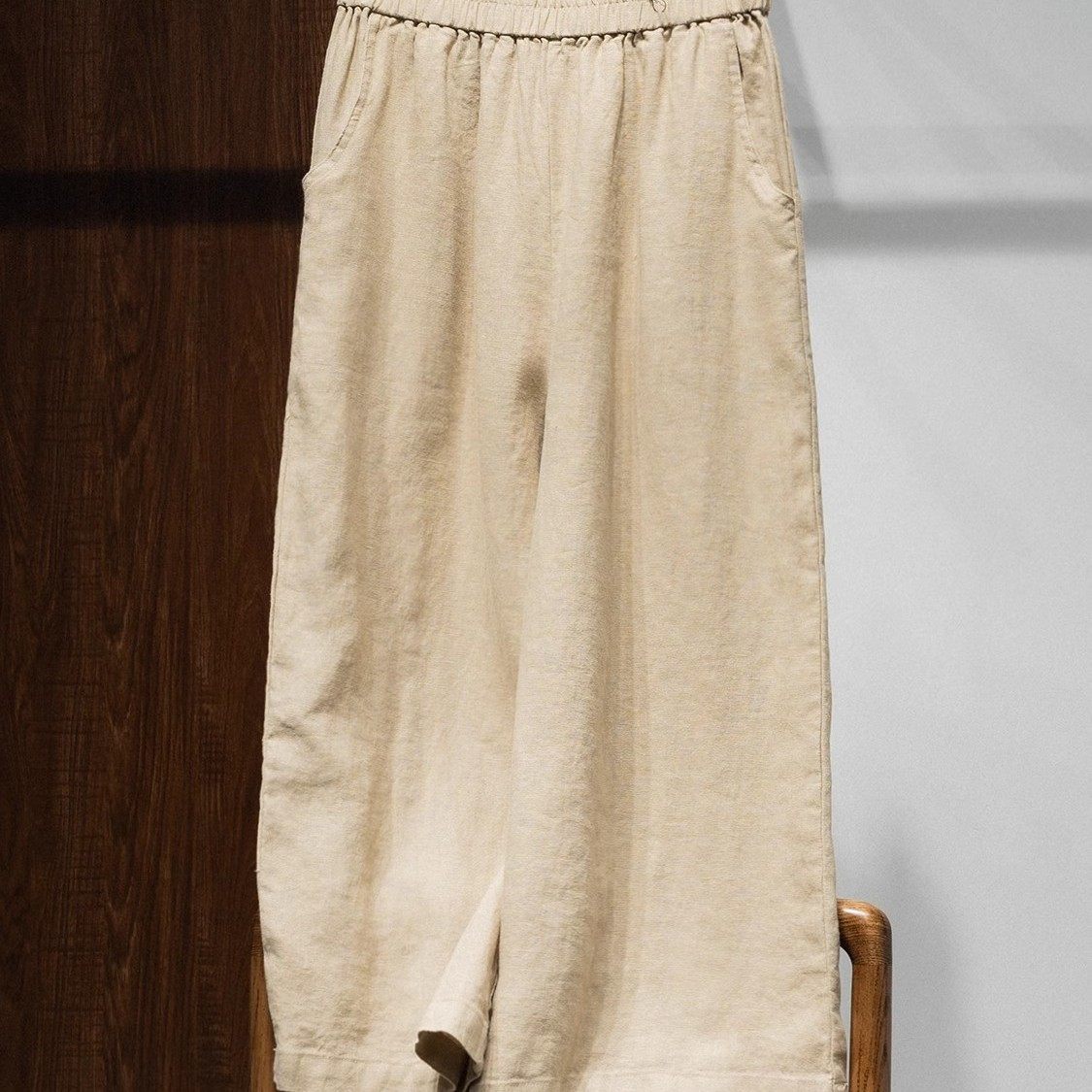 复古100%亚麻薄款高腰阔腿裤女宽松显瘦直筒裤纯色百搭八分亚麻裤