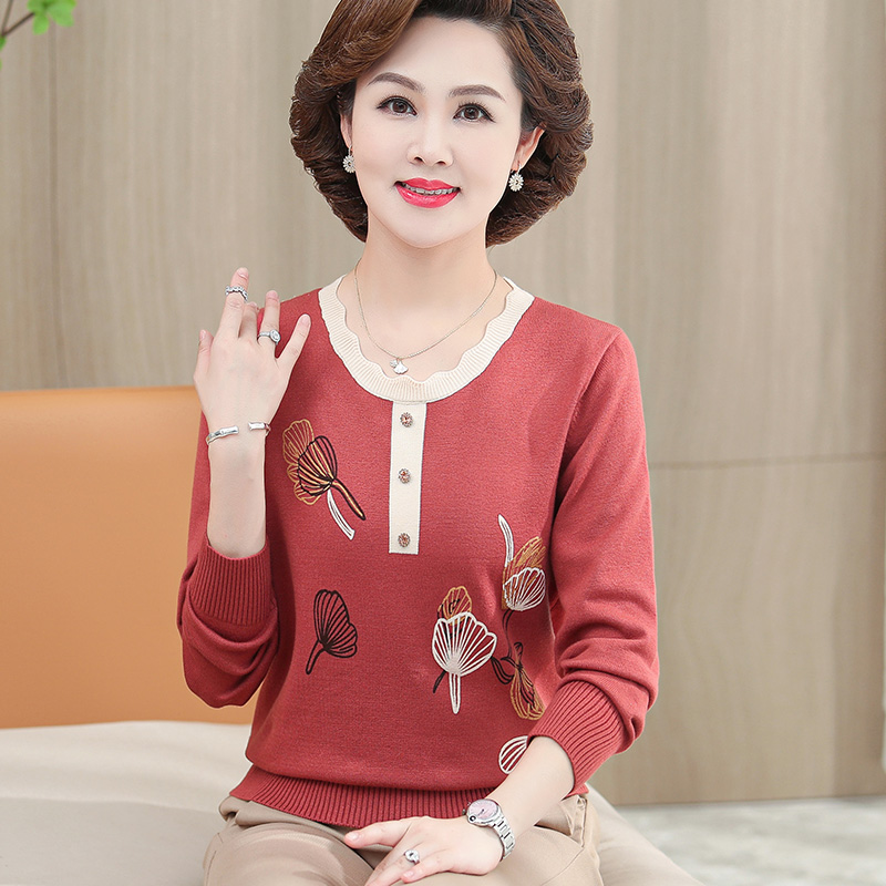 极速中年春秋长袖T恤中老年女装薄E款毛衣上衣新款妈妈秋装针织打