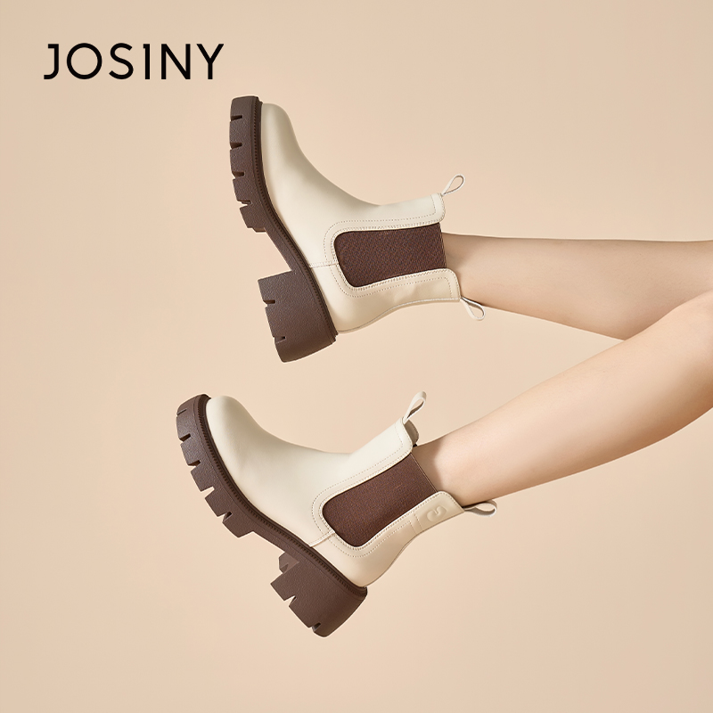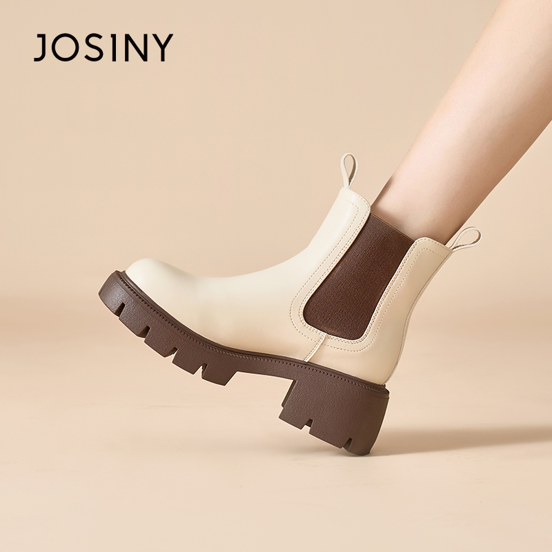 卓诗尼厚底切尔西短靴女2025秋冬新款英伦风马丁靴百搭显瘦烟筒靴