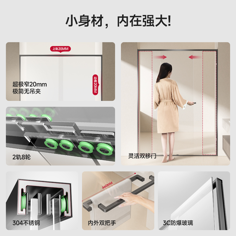 心海伽蓝3L极简双移门整体淋浴房卫生间一体屏风淋浴隔断浴室玻璃