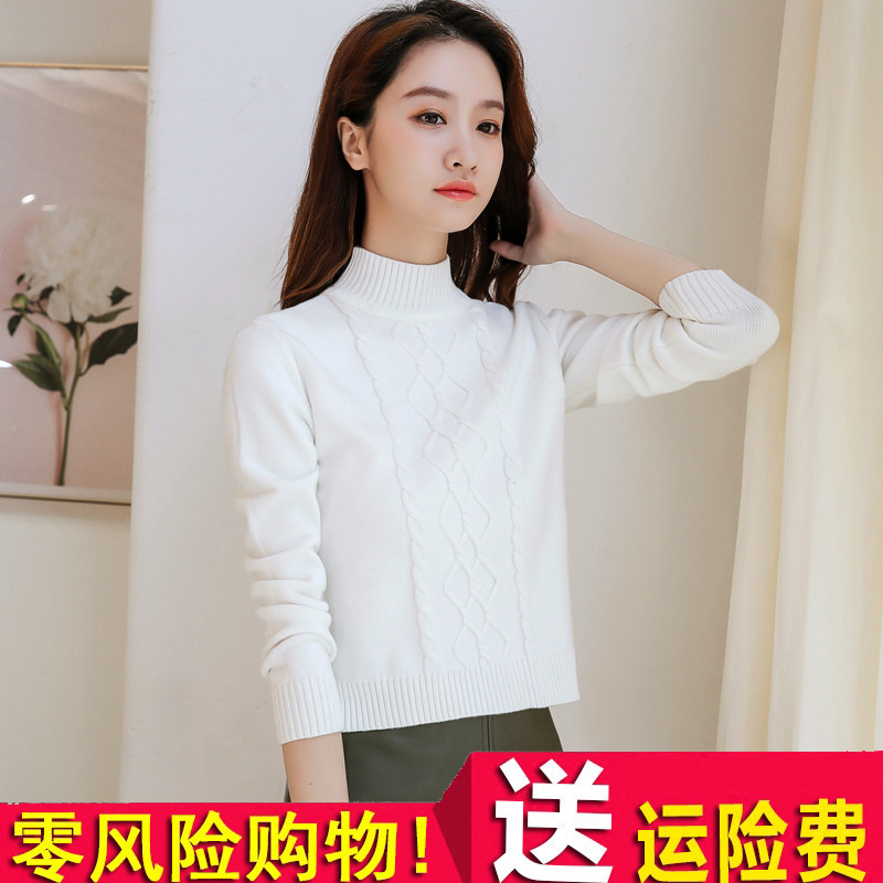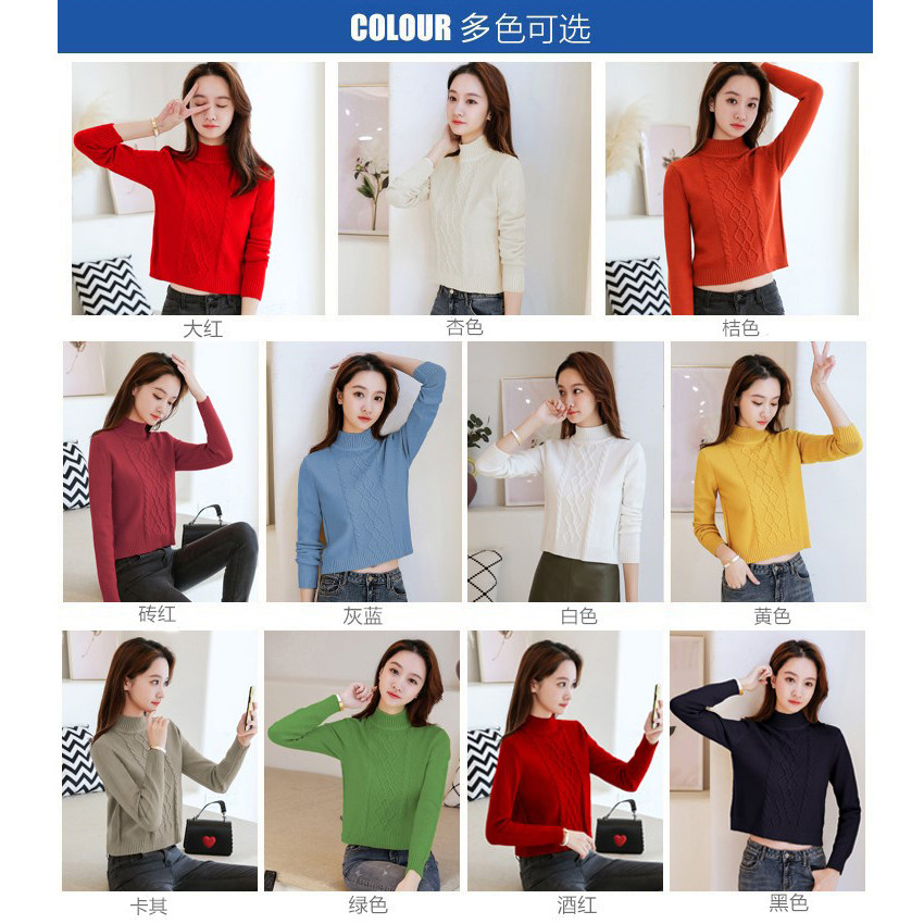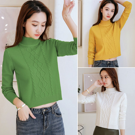 半高领毛衣女宽松短款小个子上衣冬季加厚套头中领内搭针织打底衫