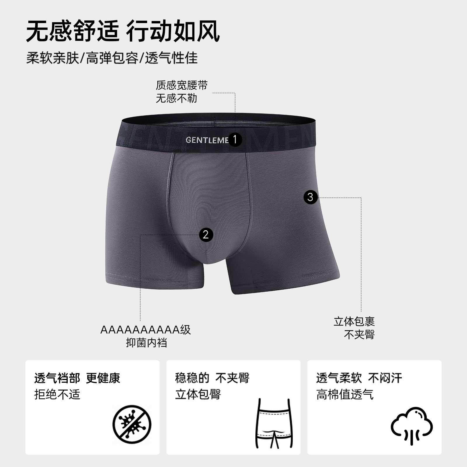 六只兔子男士内裤3条装抗菌棉质底裆不闷汗平角裤舒适高腰四角裤