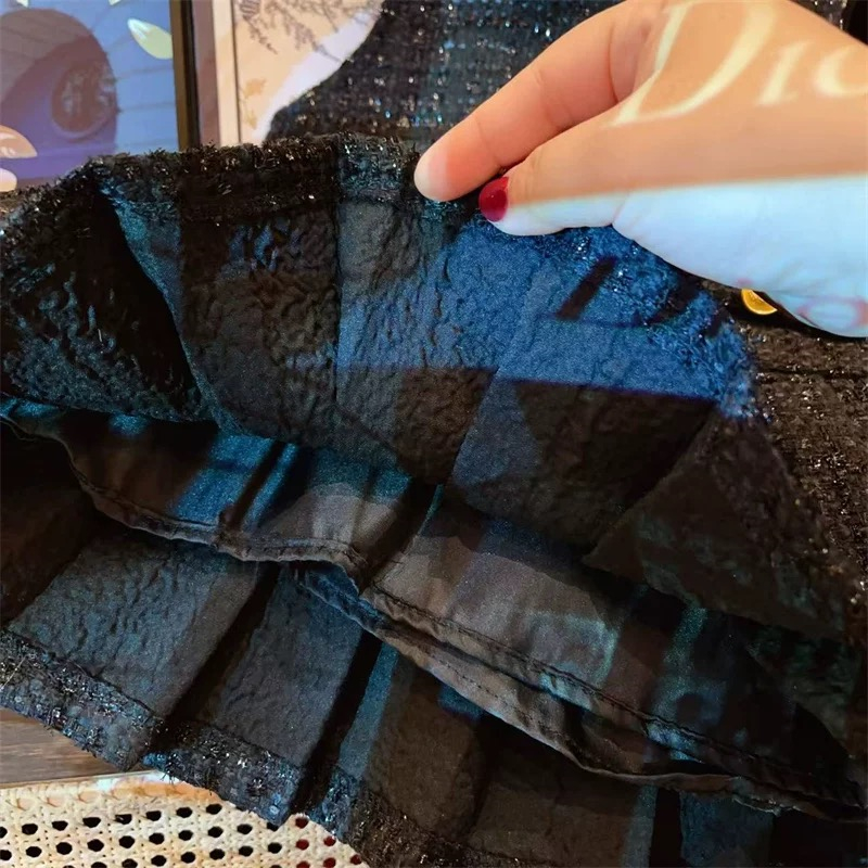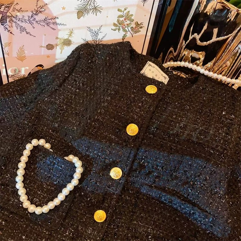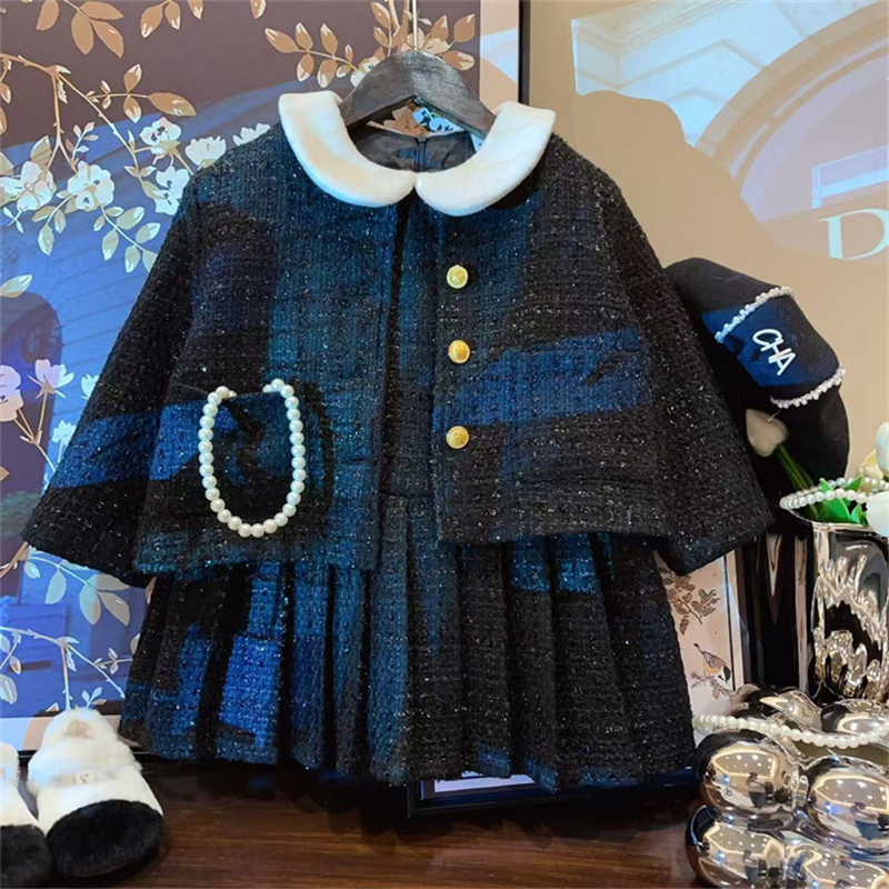 女童小香风套装秋冬洋气黑色高级小女孩外套背心裙夹棉保暖两件套