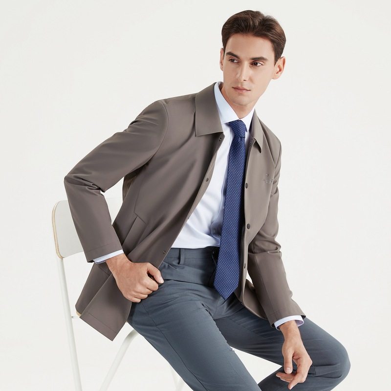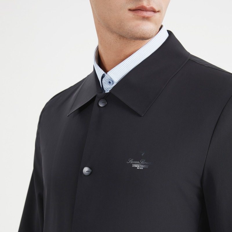 柒牌清仓风衣男春秋款时尚潮流中青年暗格子长袖翻领防风外套