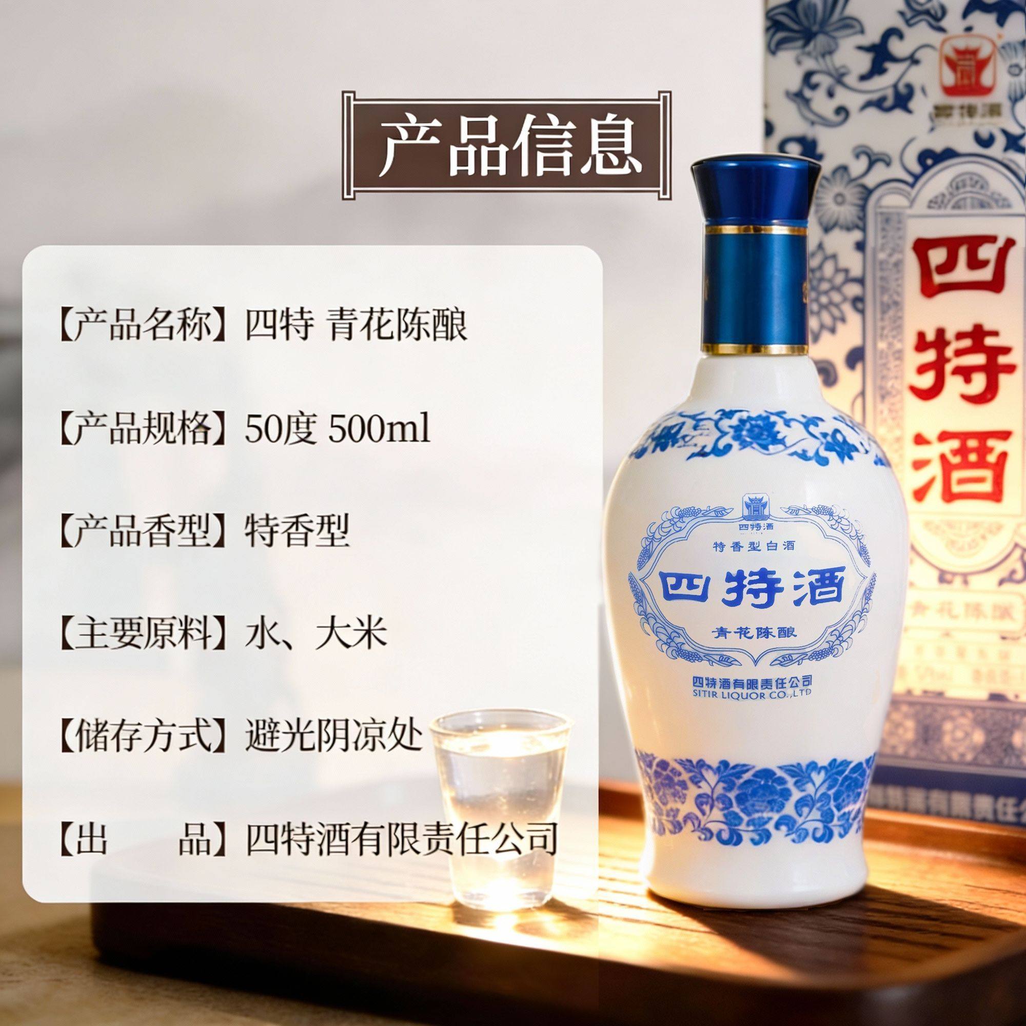 官方正品四特酒青花陈酿 50度500ml 特香型白酒 自饮纯粮酿酒