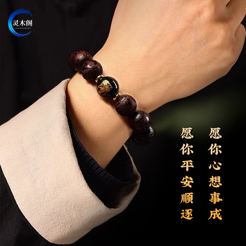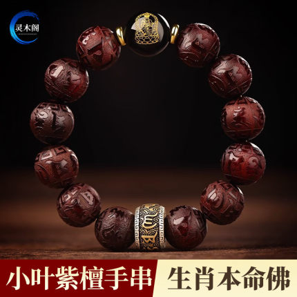 印度小叶紫檀手串男士款属蛇年本命年手链佛珠檀木质文玩生日礼物
