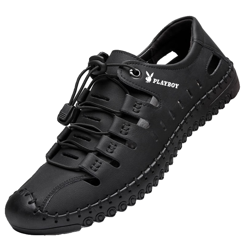 花花公子男鞋2025软底凉鞋户外休闲真皮洞洞鞋夏季镂空沙滩凉皮鞋