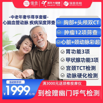 美年大健康高端父母全面深度体检套餐卡瑞慈中老年通用CT全身筛查