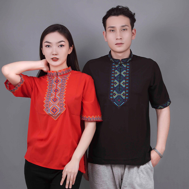 极速新疆民族风服装短袖t恤休闲夏季G宽松雪纺餐厅员工装男女同款