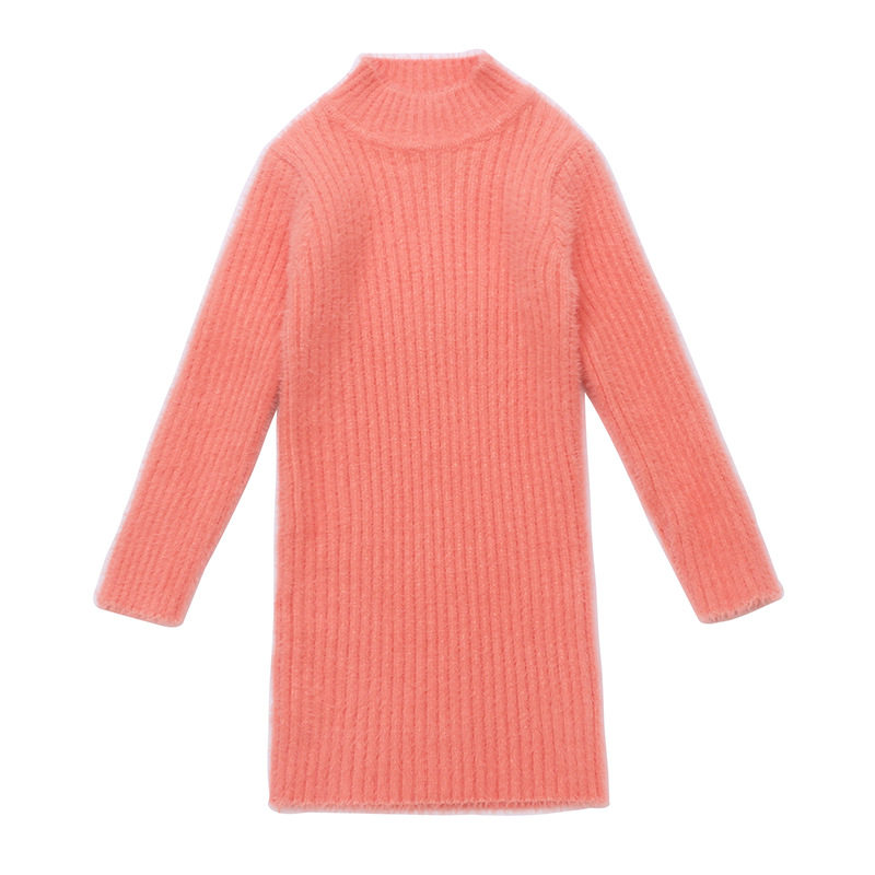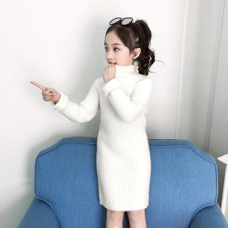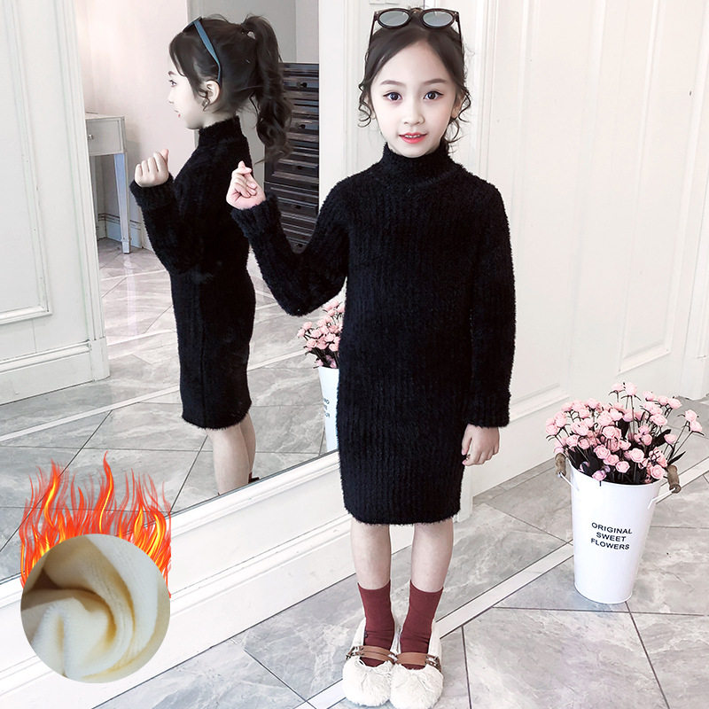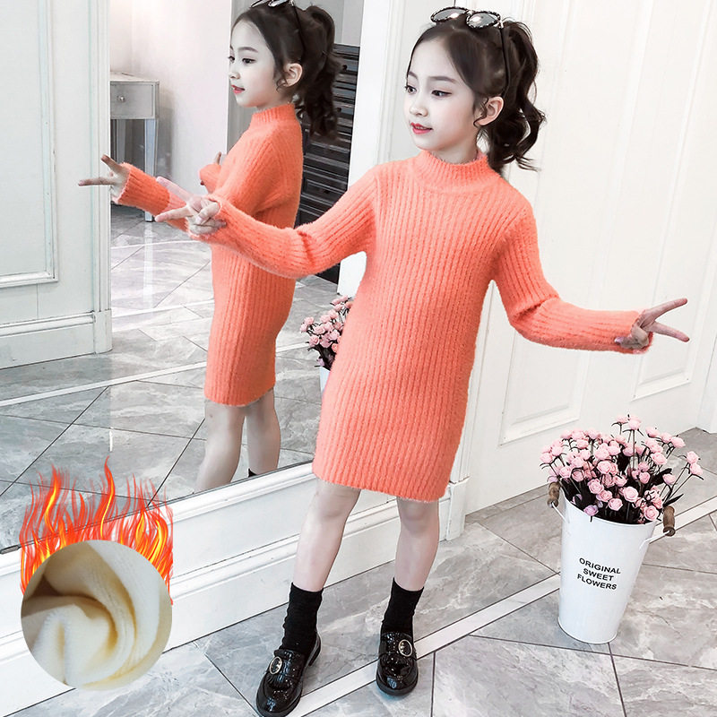 女童毛衣裙秋冬新款中长款水貂绒儿童加绒加厚中大童装打底针织衫