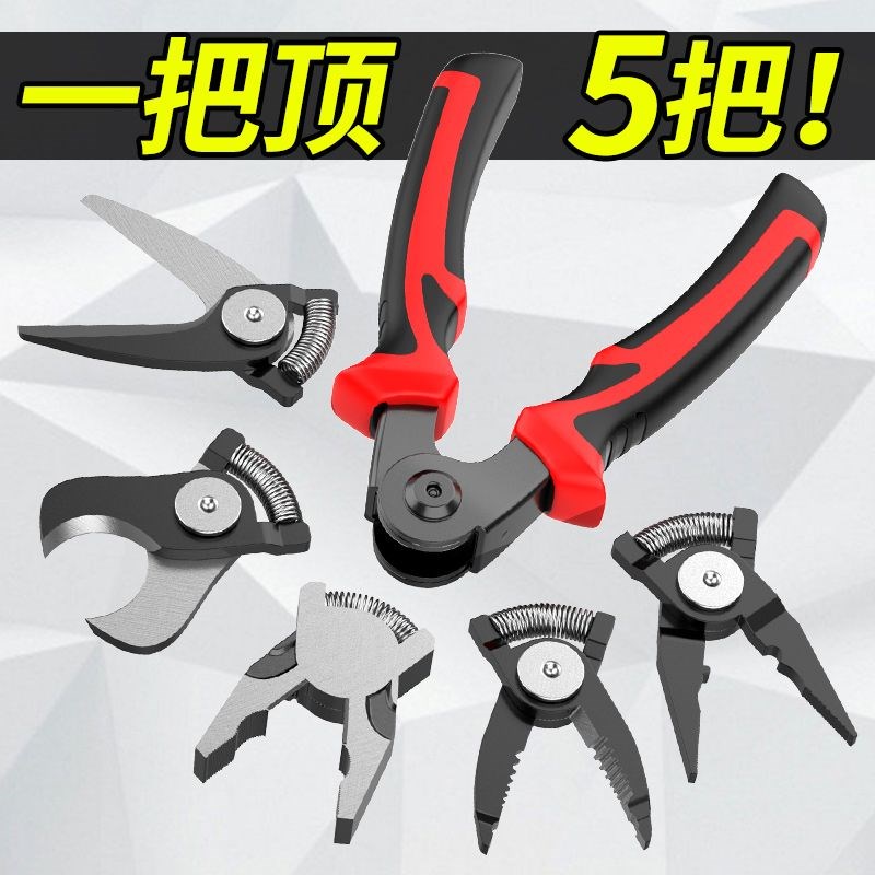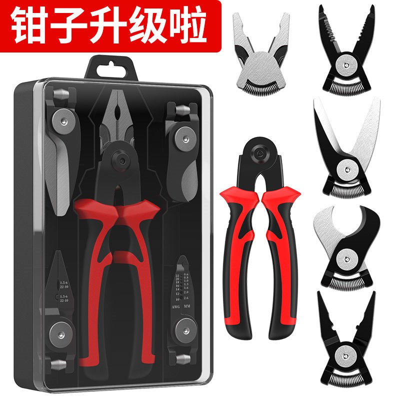 多功能换头钳子一拖五多用电工剥线钳老虎钳多头钳子大全工具套装