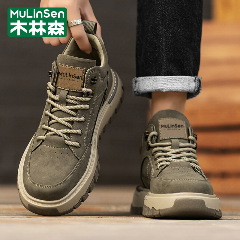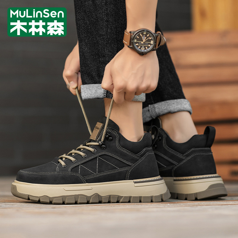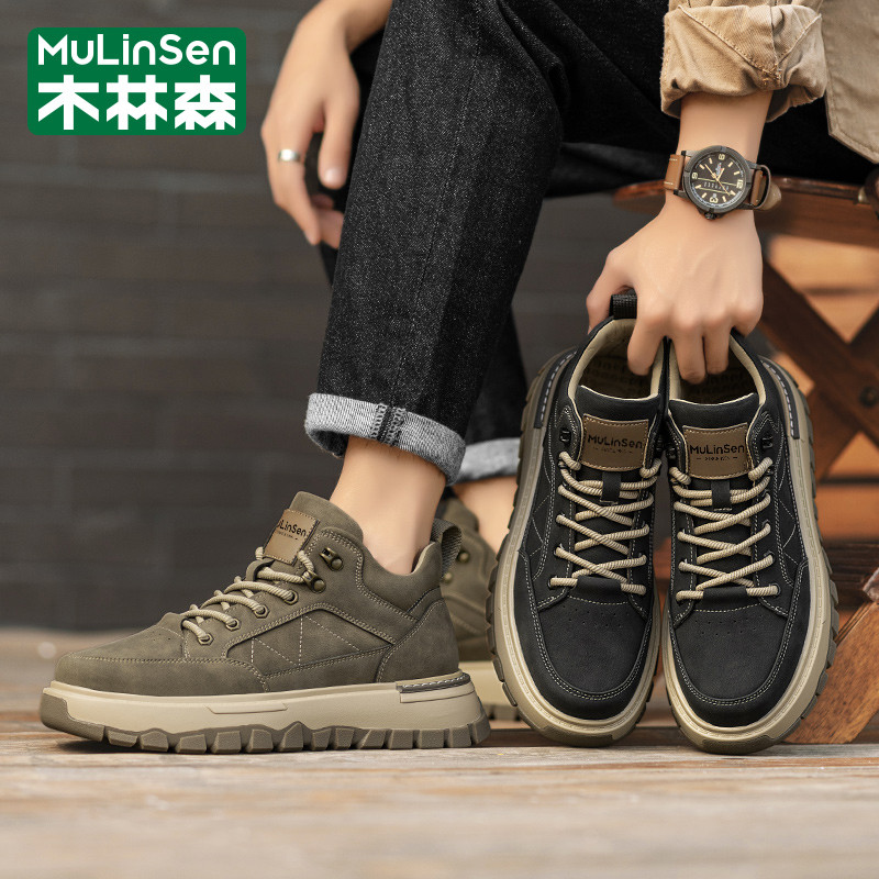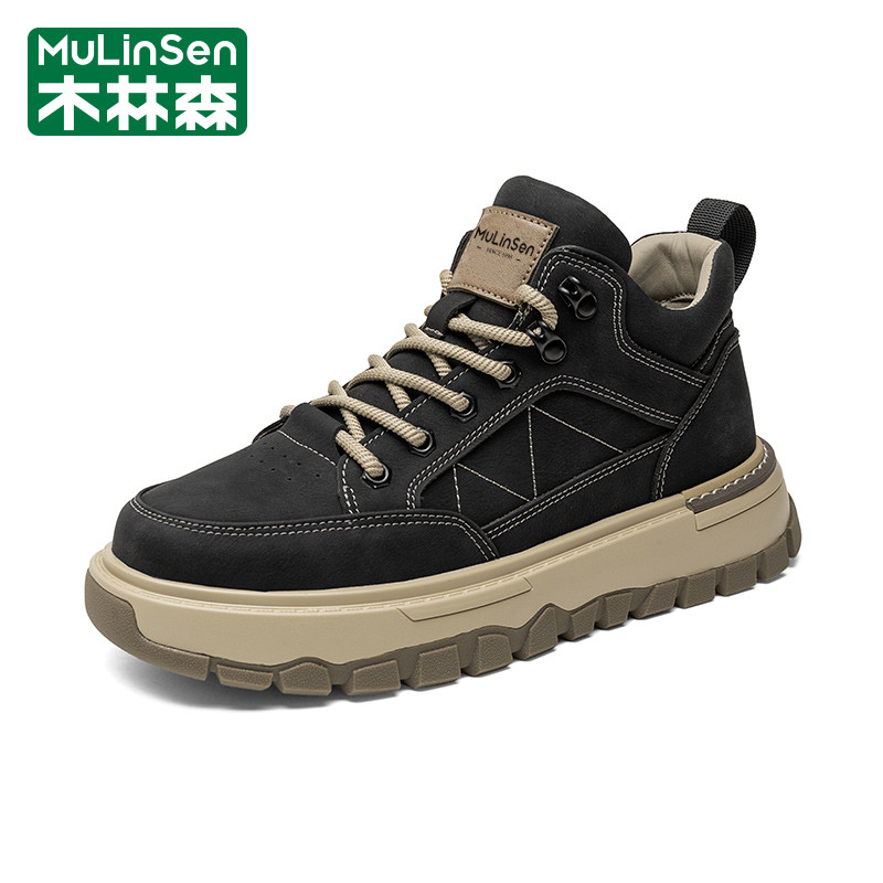 木林森男鞋2025新款冬季运动休闲中高帮板鞋工装马丁登山皮鞋短靴