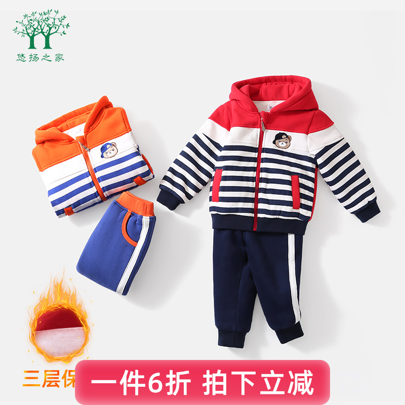 宝宝卫衣套装夹棉秋冬款儿童棉裤加绒男童女童二三岁棉衣加厚冬装