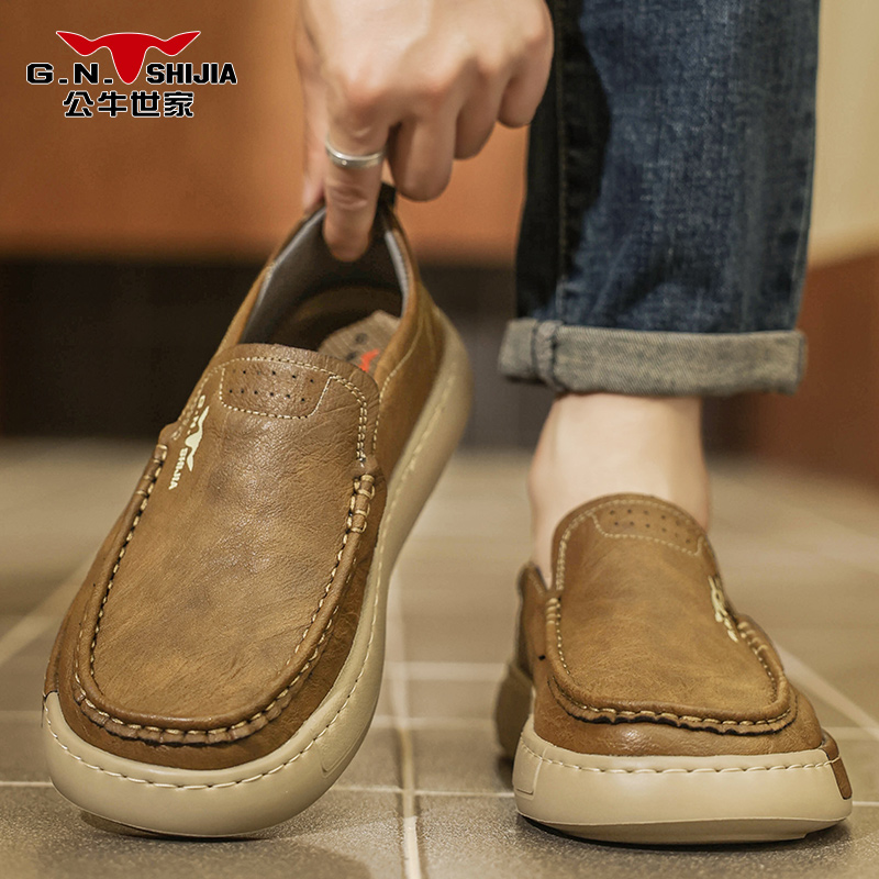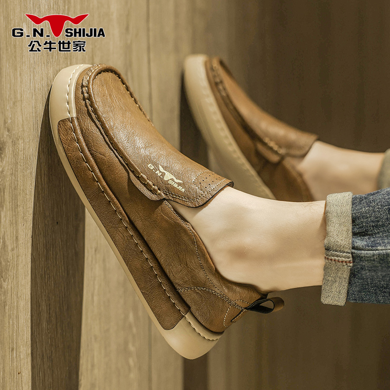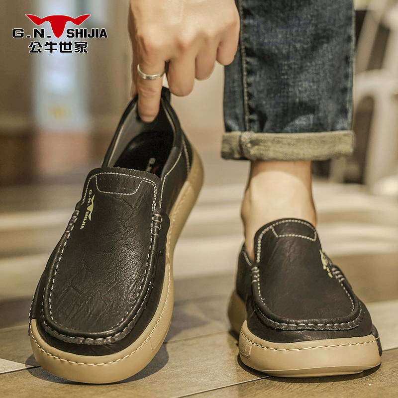 公牛世家豆豆鞋男2025新款秋季一脚蹬男鞋公务高端软底男士乐福鞋