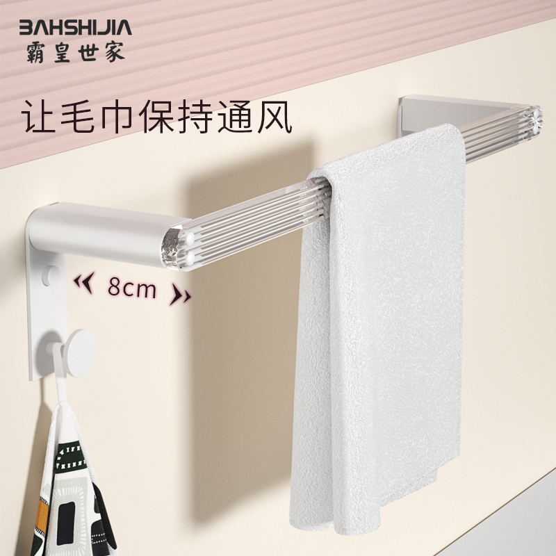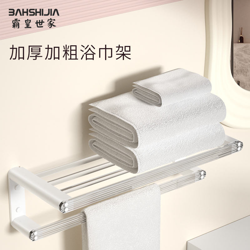 白色毛巾架免打孔卫生间浴巾架卫浴挂件五金浴室厕所亚克力置物架