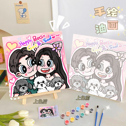 画画生日diy数字油画新婚定制星蝶公主手工礼物填充肌理画装饰画