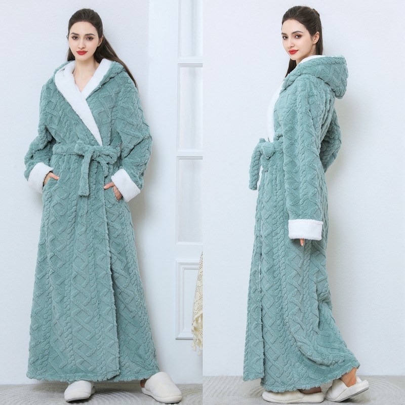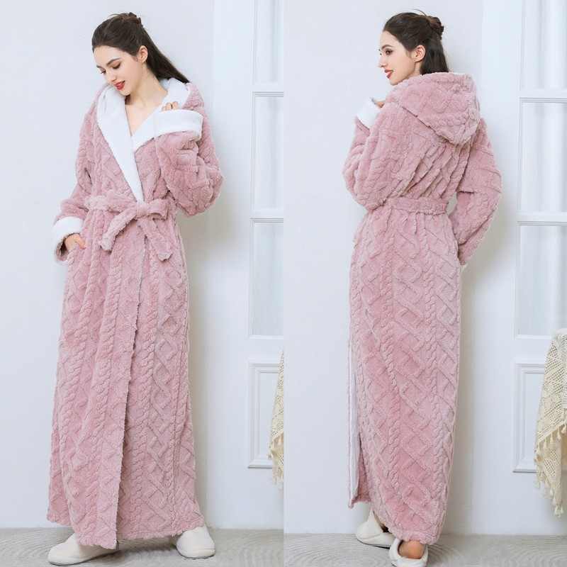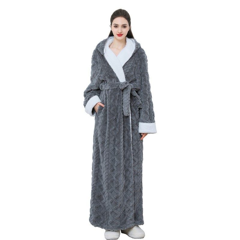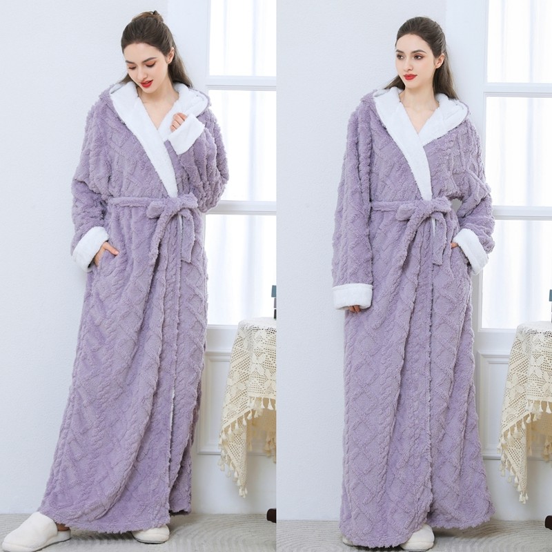 睡袍女秋冬季加长款加厚连帽浴袍