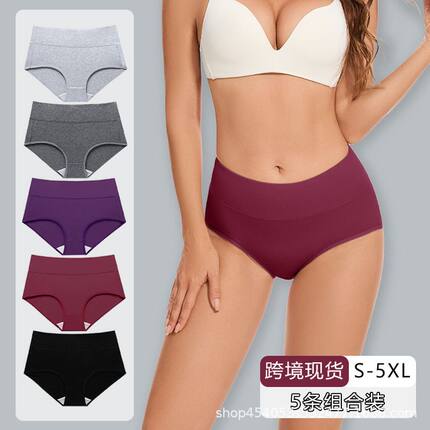 现货跨境爆款5条装多尺码女士内裤三角裤纯棉中腰性感内裤女运动