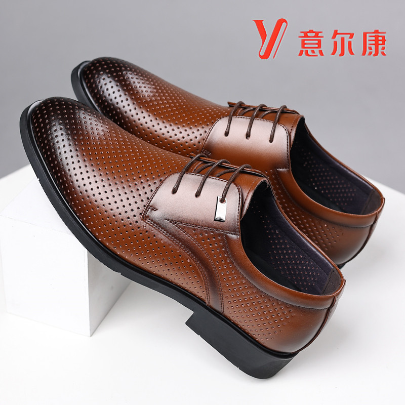 2025夏季透气凉鞋商务正装男鞋真皮内增高皮鞋新款休闲大码爸爸鞋
