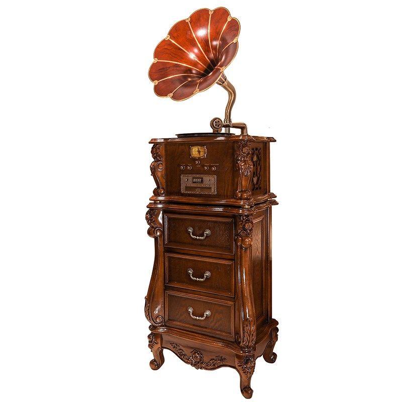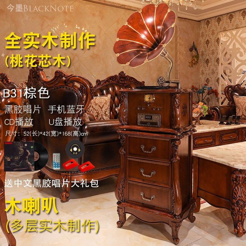 复古留声机仿古黑胶唱片机客厅老式大喇叭音响实木古典电唱机