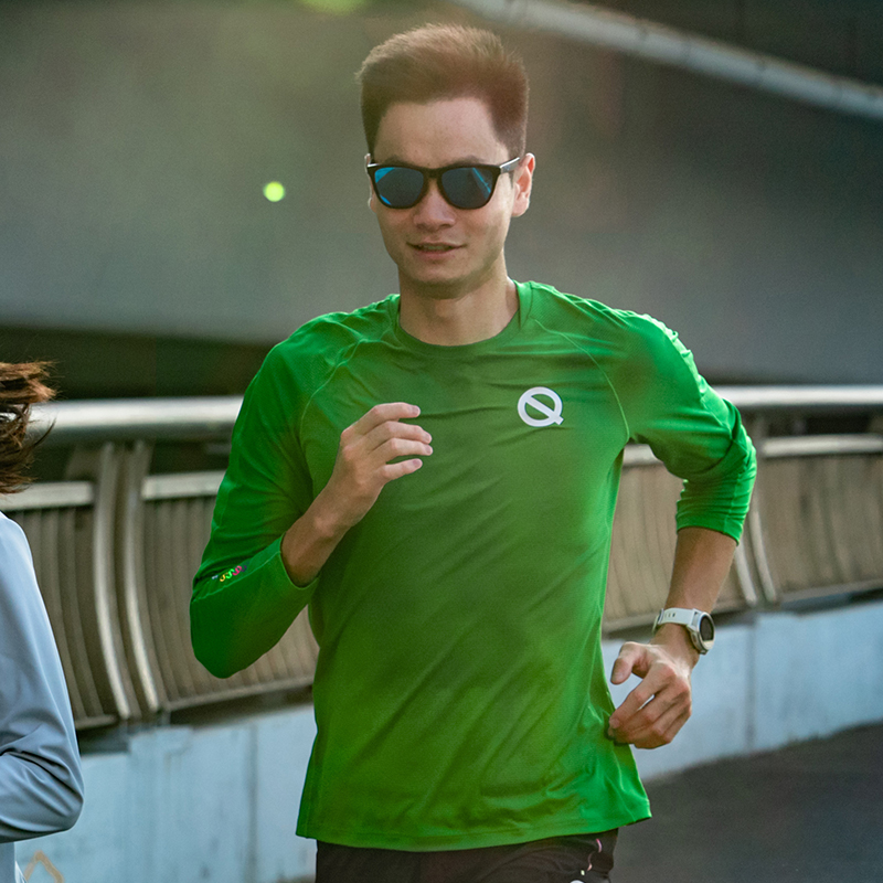 轻功马拉松运动跑步长袖t恤呼吸方格交叠领训练速干衣男上衣装备