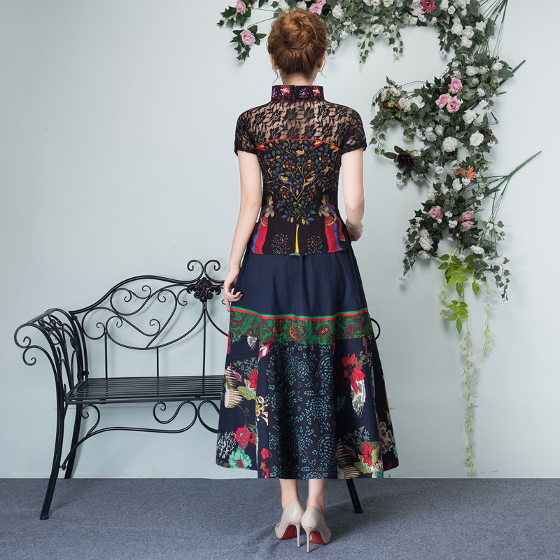民族风套装女棉麻两件套夏季妈妈女装改良旗袍复古唐装上衣中国风