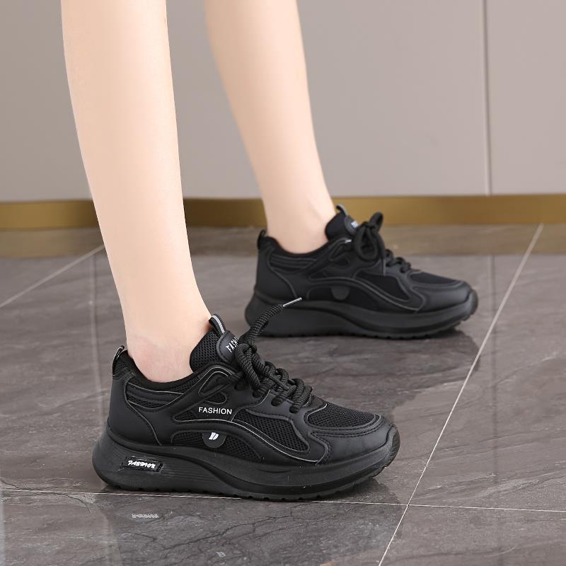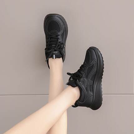 厨房防滑鞋女春夏新款久站不累脚软底工作鞋上班专用全黑色运动鞋