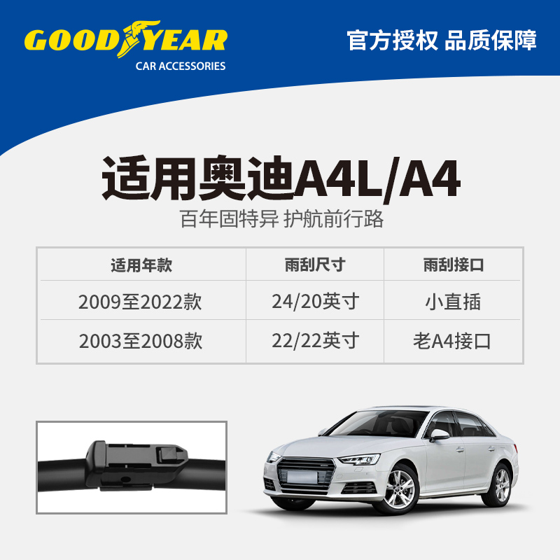 固特异适用奥迪A4L雨刮器条A4专用刮雨器原装原厂胶条无骨雨刷片