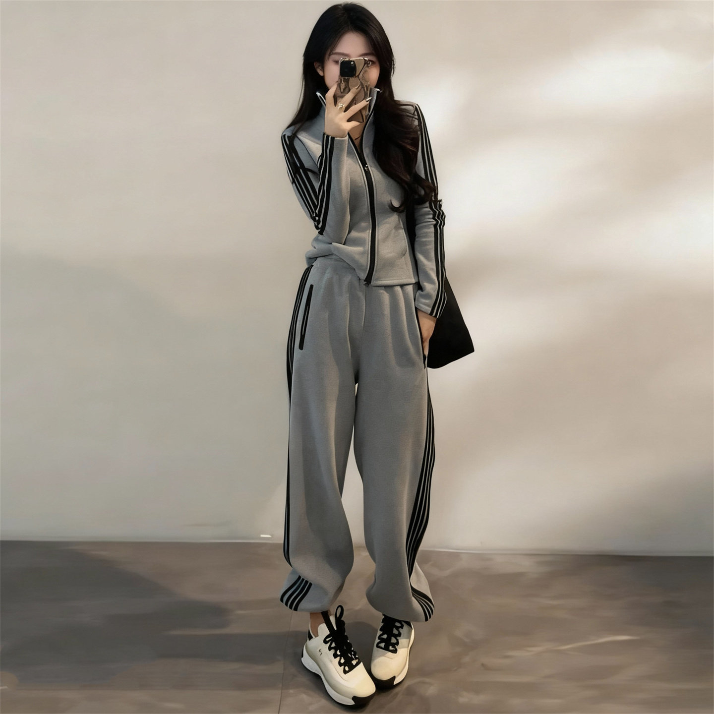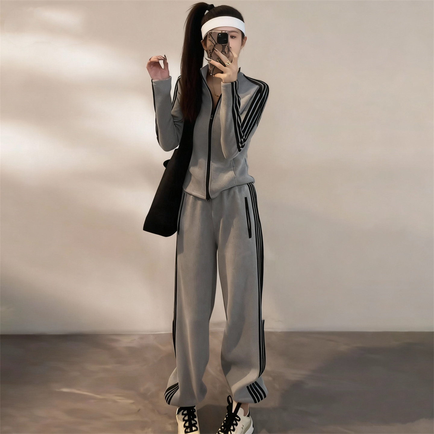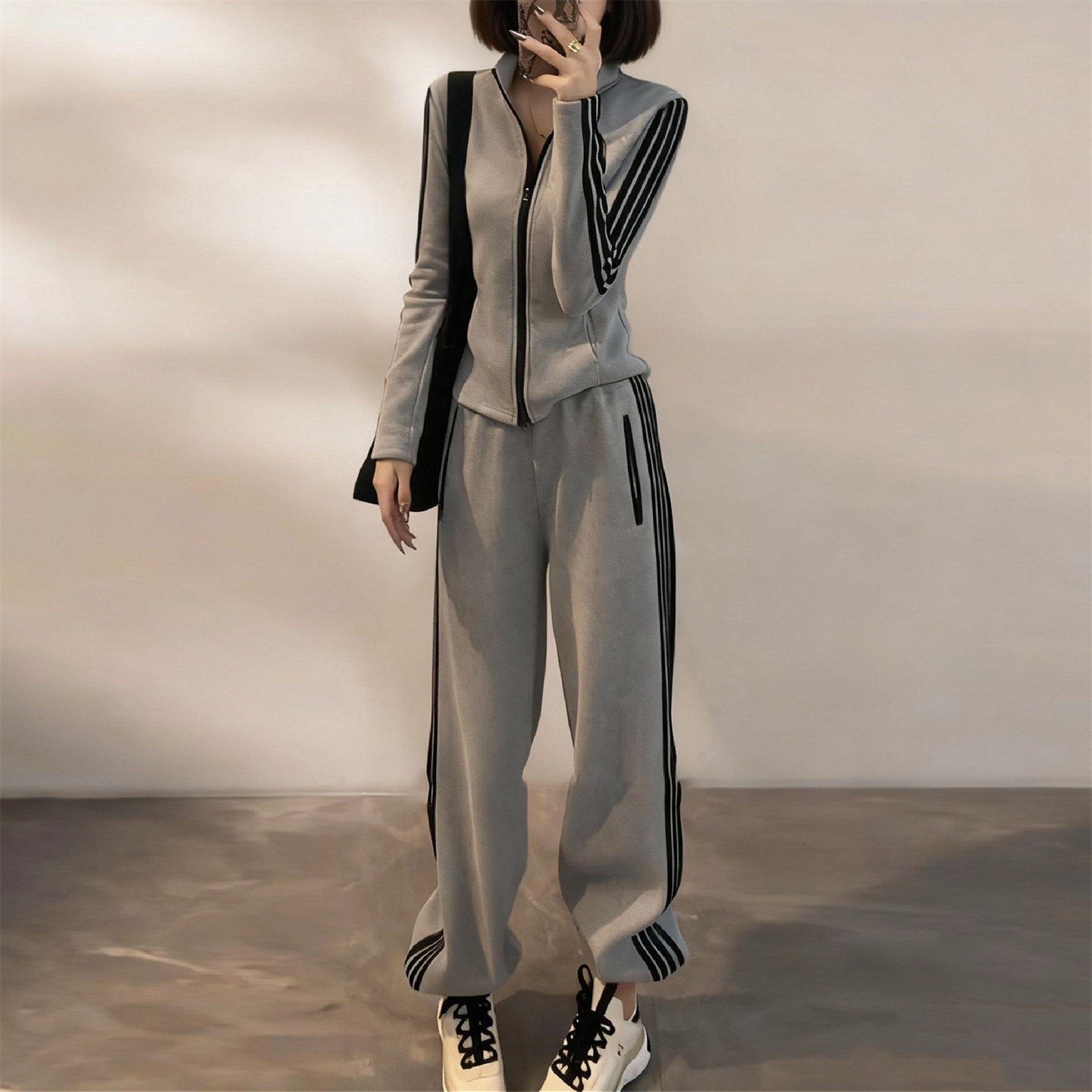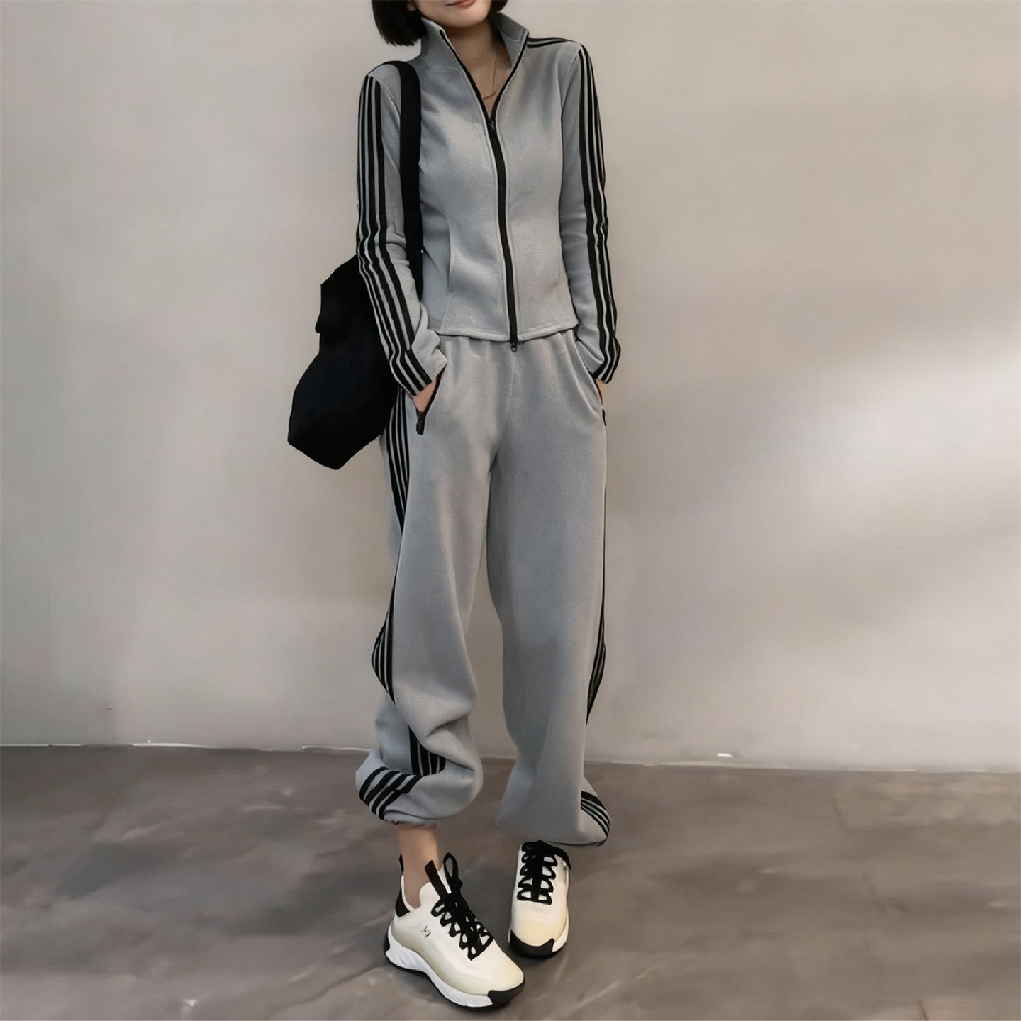 显瘦立领拉链卫衣束脚裤两件套