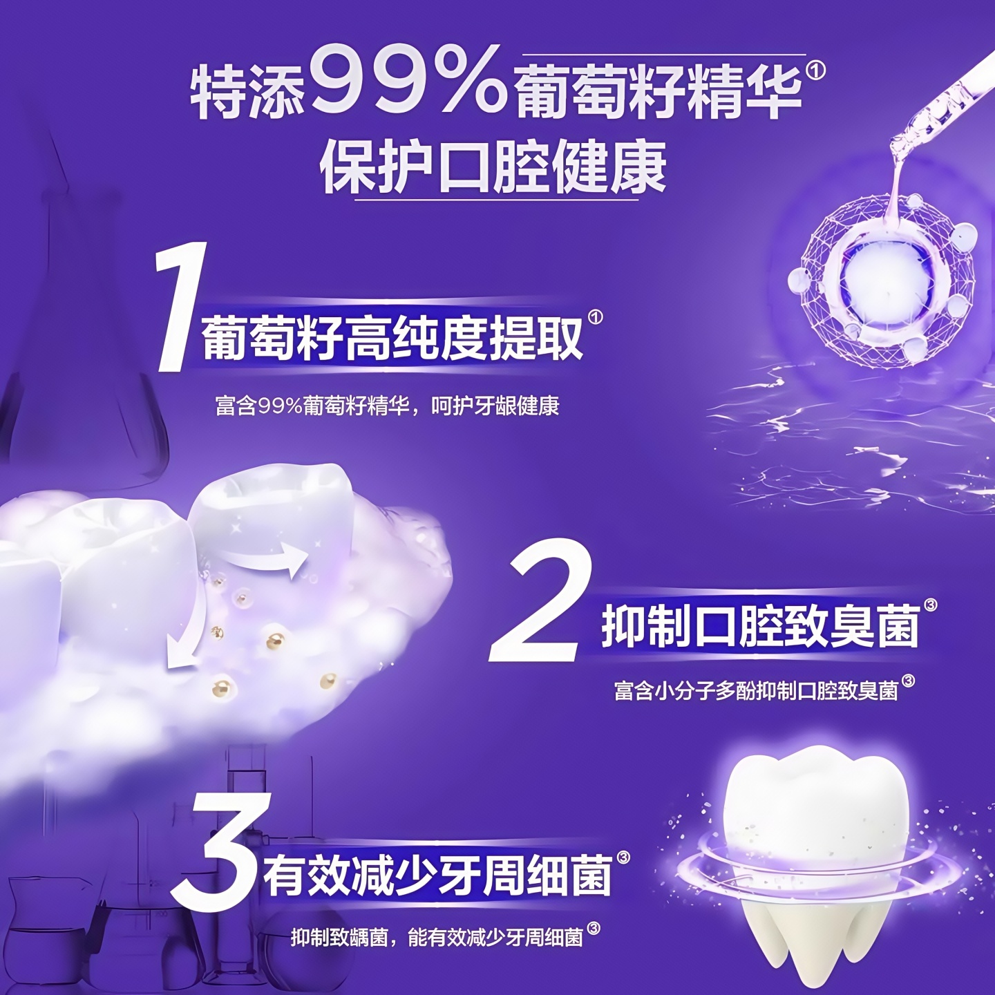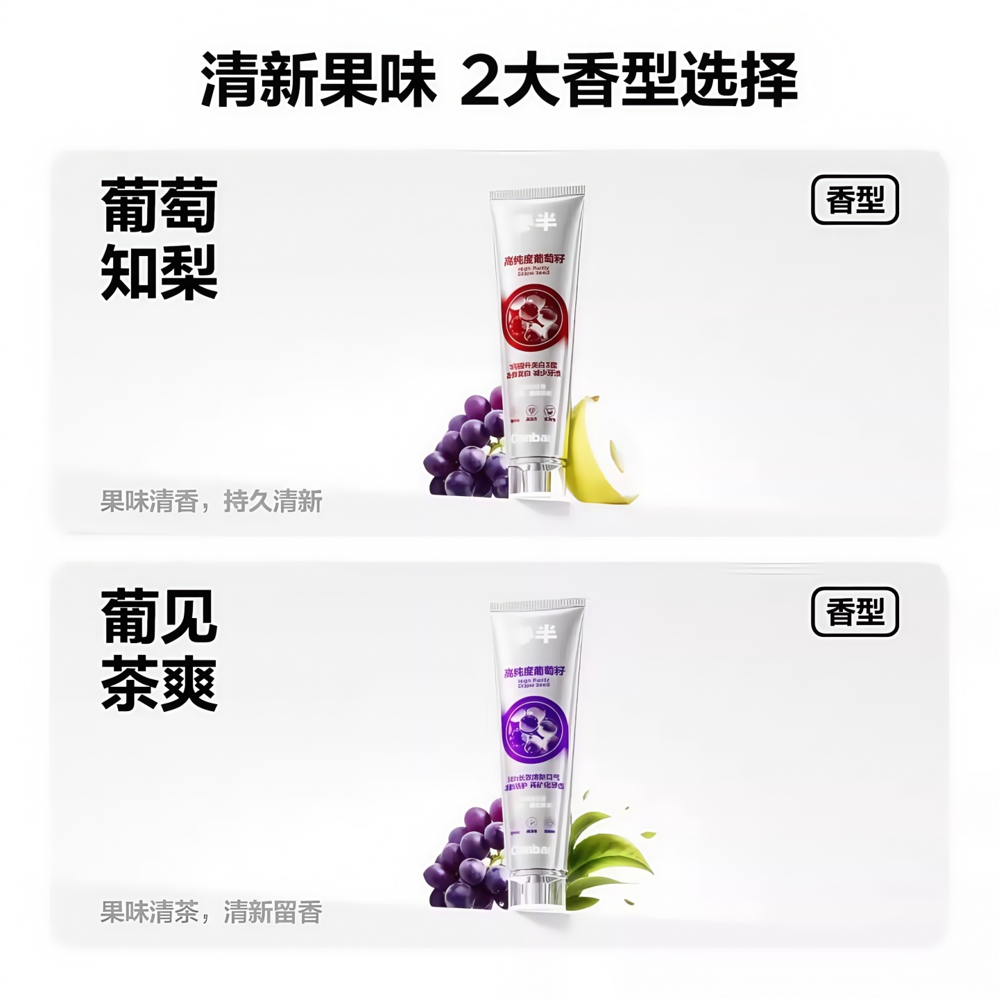 【新品上市】参半葡萄籽美白牙膏长效清新口气去黄牙齿清洁旗舰店