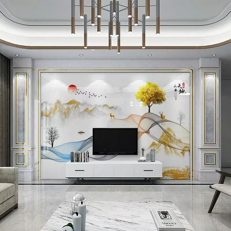 2025新款岩板电m视背景墙客厅瓷砖大理石现代简约轻奢影视机墙装