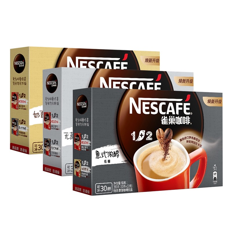 雀巢咖啡1+2原味特浓学生提神三合一速溶咖啡粉低糖30条官方正品