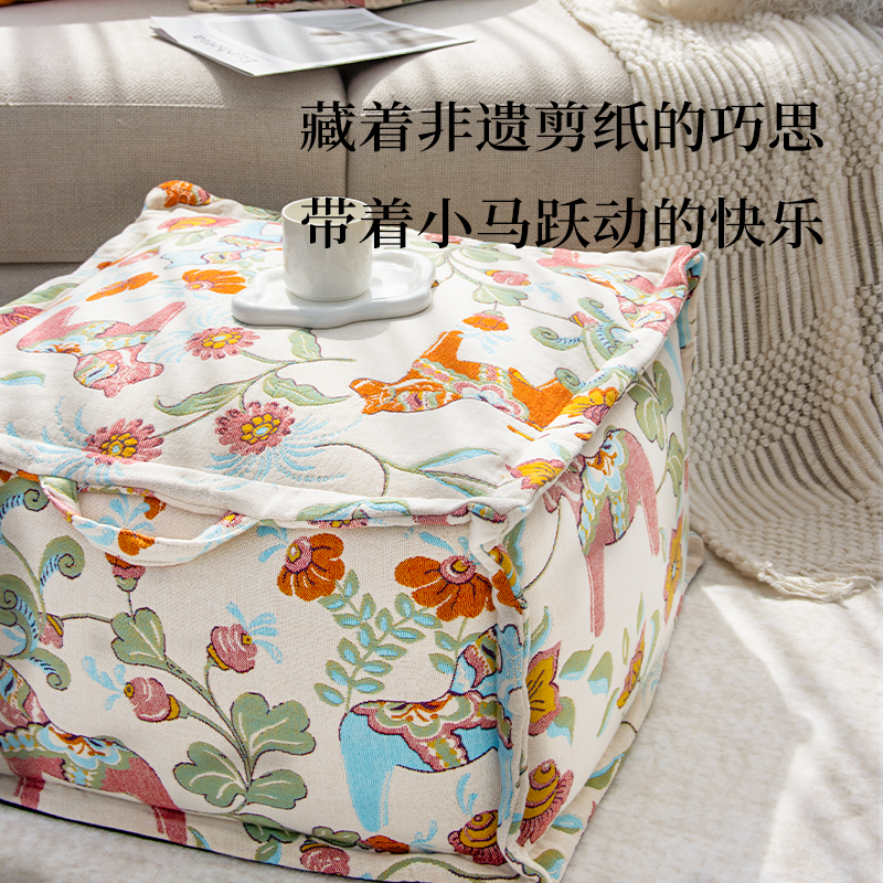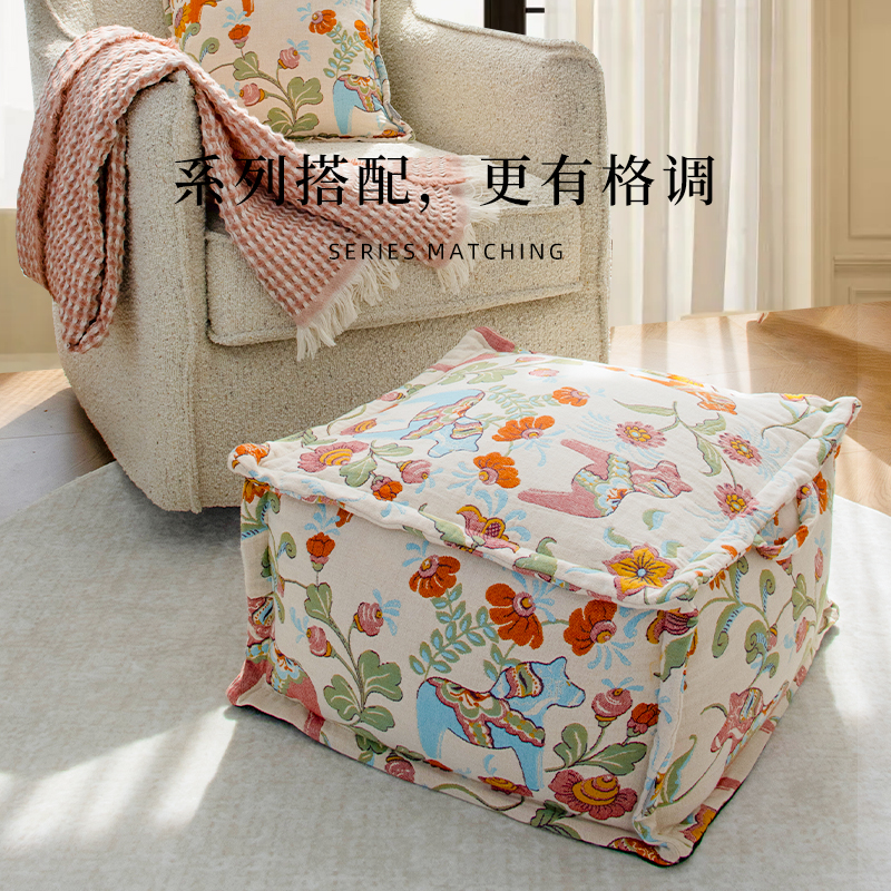 目野「乐跃花驰」法式坐墩高级轻奢蒲团换鞋凳客厅脚踏沙发凳新款