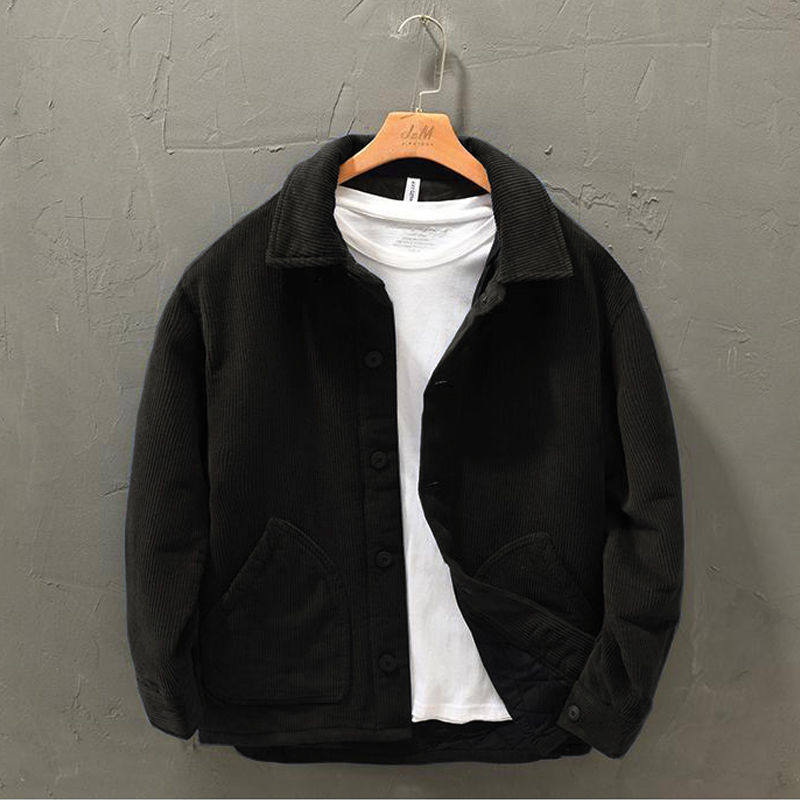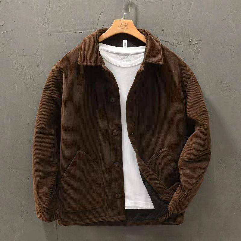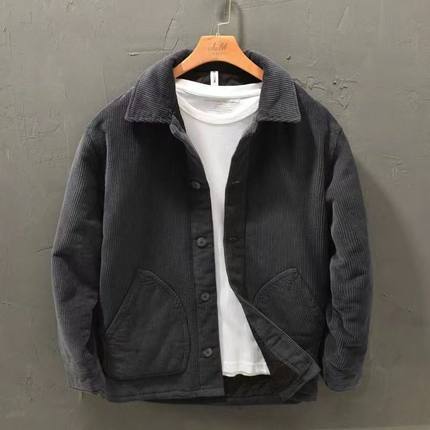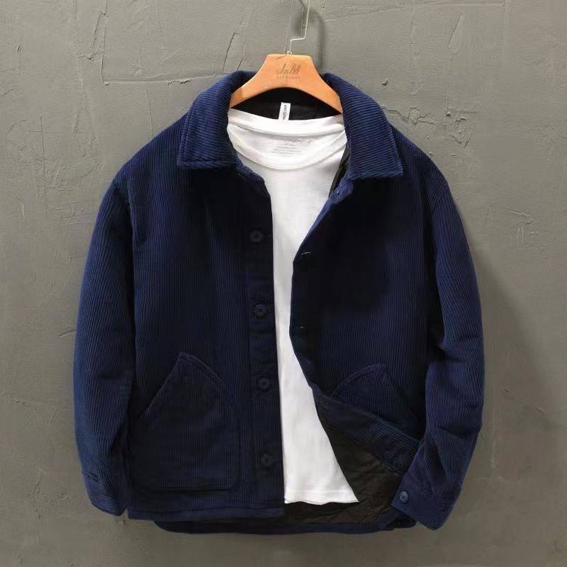 秋冬款棉服复古灯芯绒加厚休闲男士保暖宽松青年外套男条绒衬衫