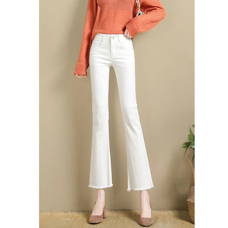 浅蓝色九分微喇牛仔裤女2025年秋冬季高腰显瘦小个子毛边小喇叭裤