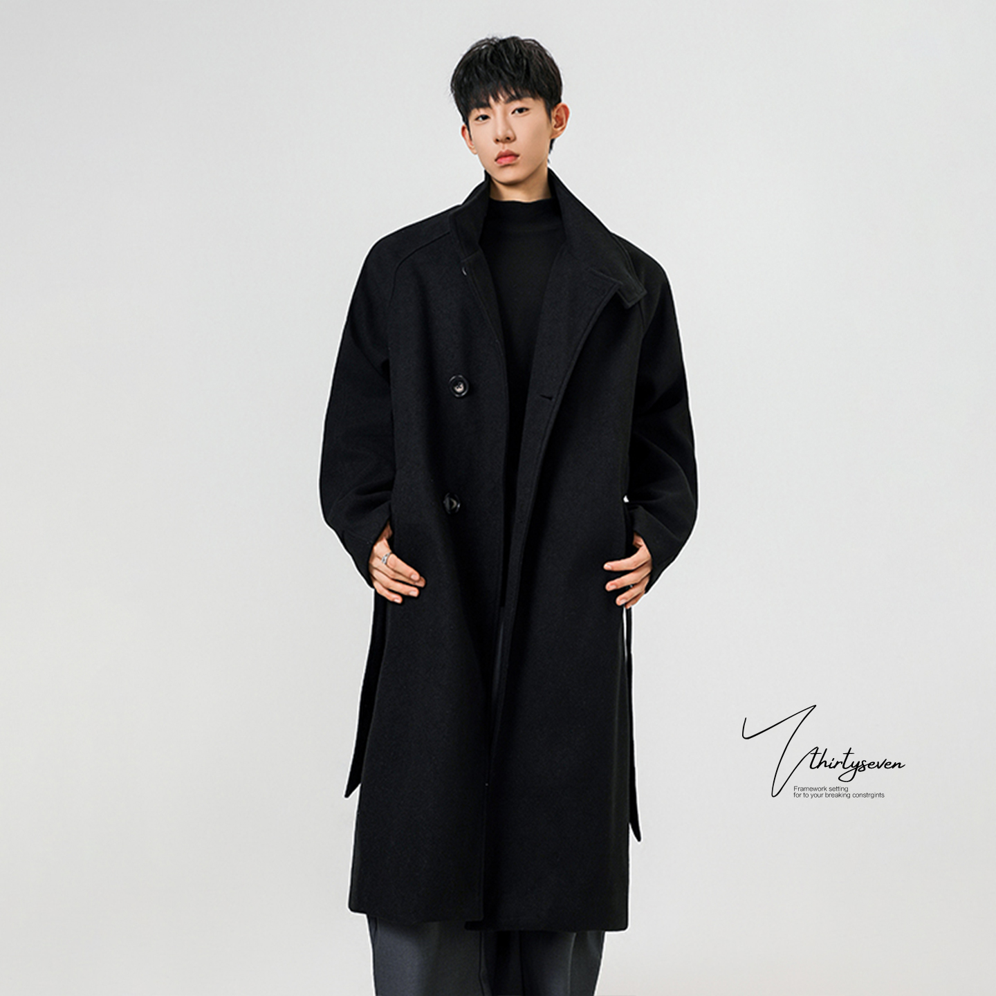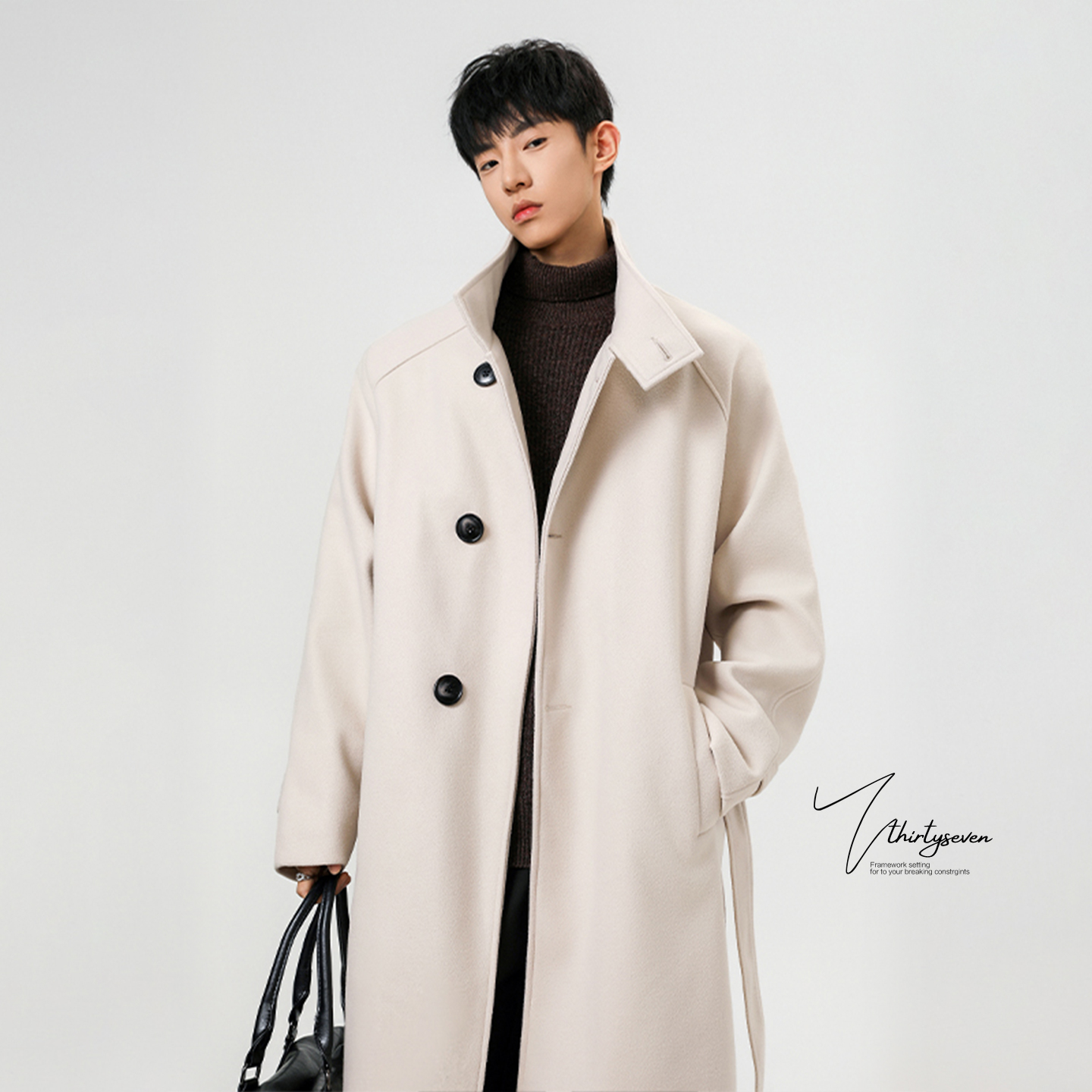 V37美式复古立领呢子大衣男款秋宽松潮牌高级感百搭毛呢风衣外套