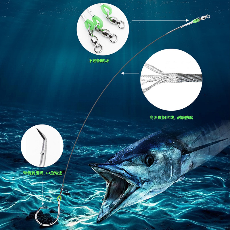 49股钢丝鹰嘴钩绑好子线单钩 金枪鱼巨型石斑马鲛鱼不锈钢海钓钩