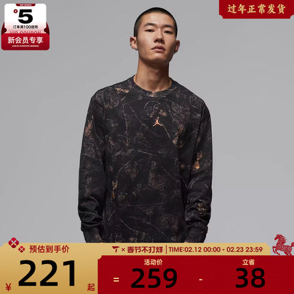 NIKE耐克男子jordan运动休闲印花针织圆领长袖T恤IF3047-010