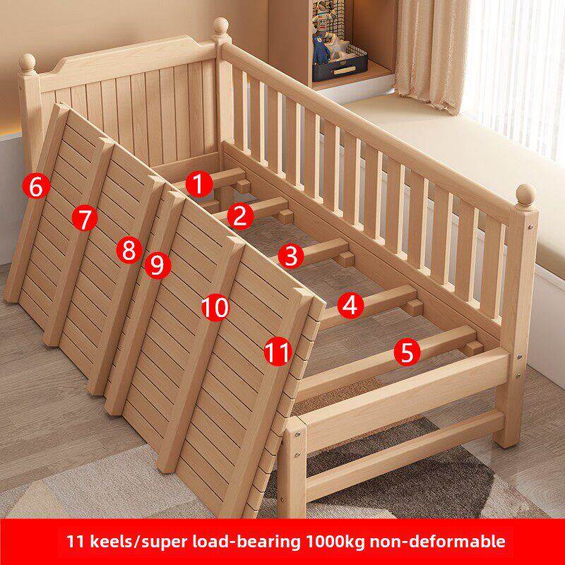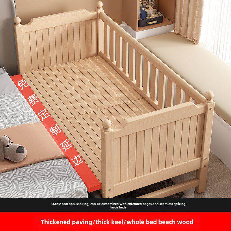 定制榉木儿童床宝宝婴儿拼接床加宽床边床带护栏实木小床大人可睡