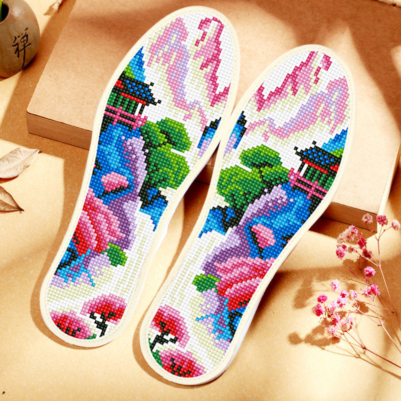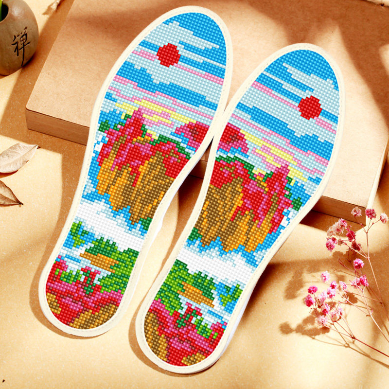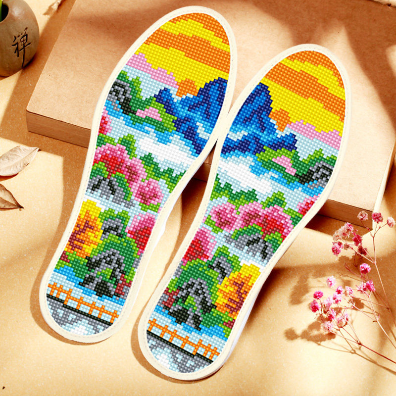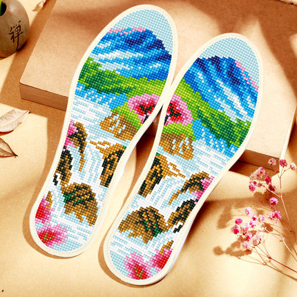 十字绣鞋垫自创2025年针孔图案加厚手工自己男女新款半成品七彩