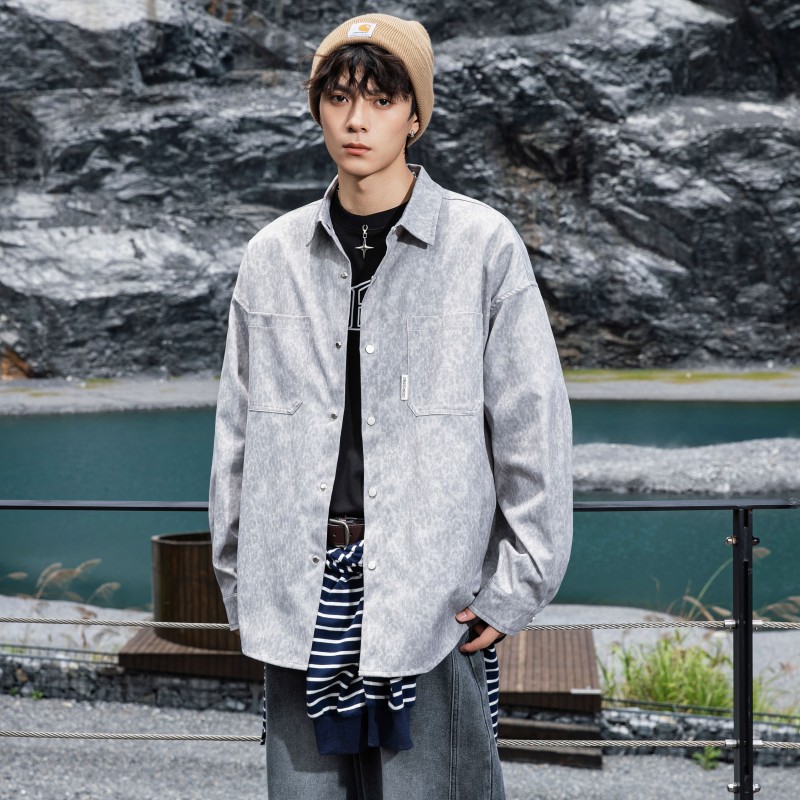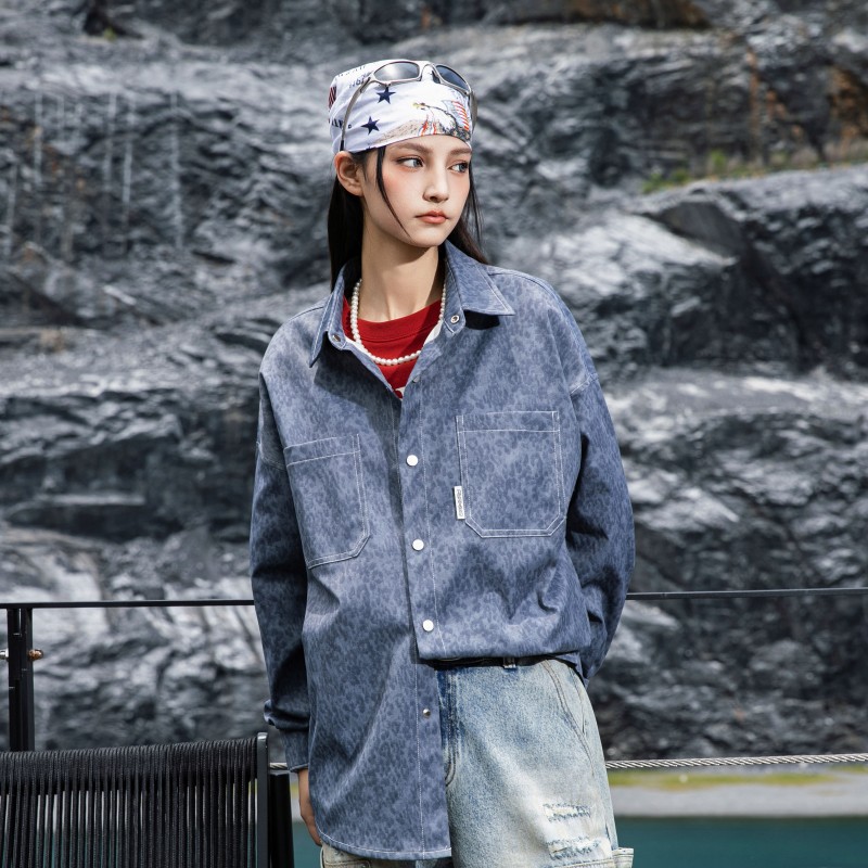NASA官方联名牛仔衬衫男士长袖春秋季款美式重磅潮流痞帅水洗衬衣