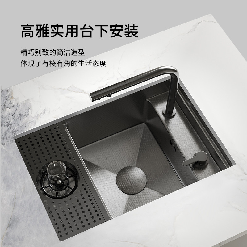 摩仕压纹吧台洗杯器水槽隐形小单槽304不锈钢中岛厨房迷你洗菜盆