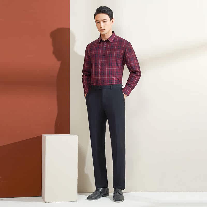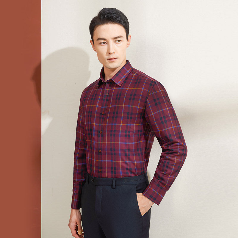 乔治白冬季男士热保护加棉长袖衬衫休闲格子加厚保暖绵羊毛上衣